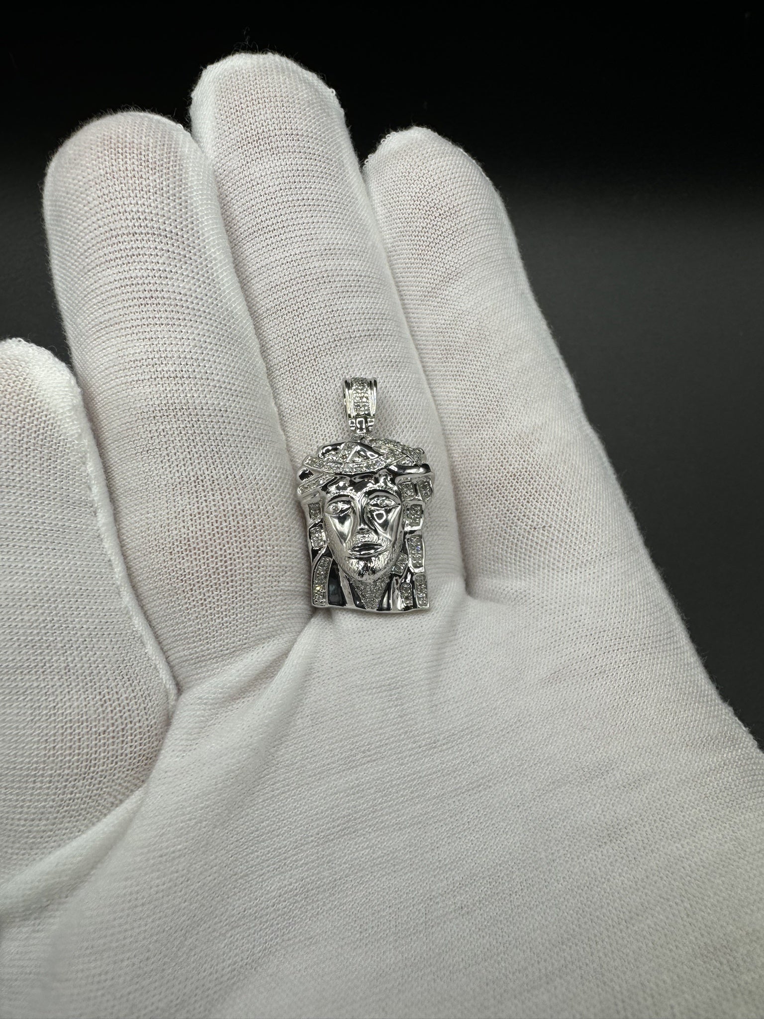 1” 10k White Gold 1/3ctw Natural Diamond Jesus Piece 3mm Bail 6.1g