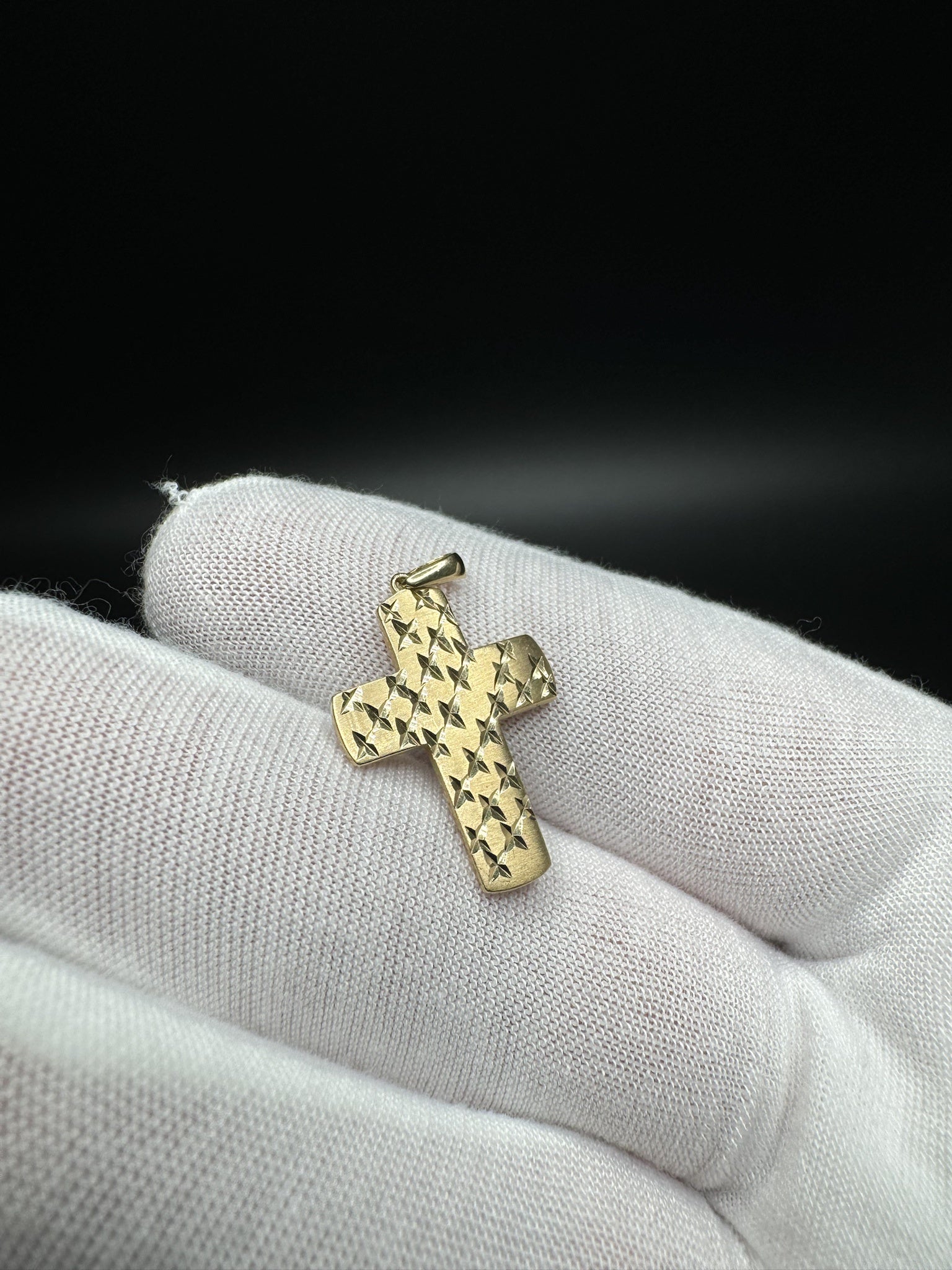 1” 14k Yellow Gold Square Diamond Cut Cross 2.3mm Bail 1.82g