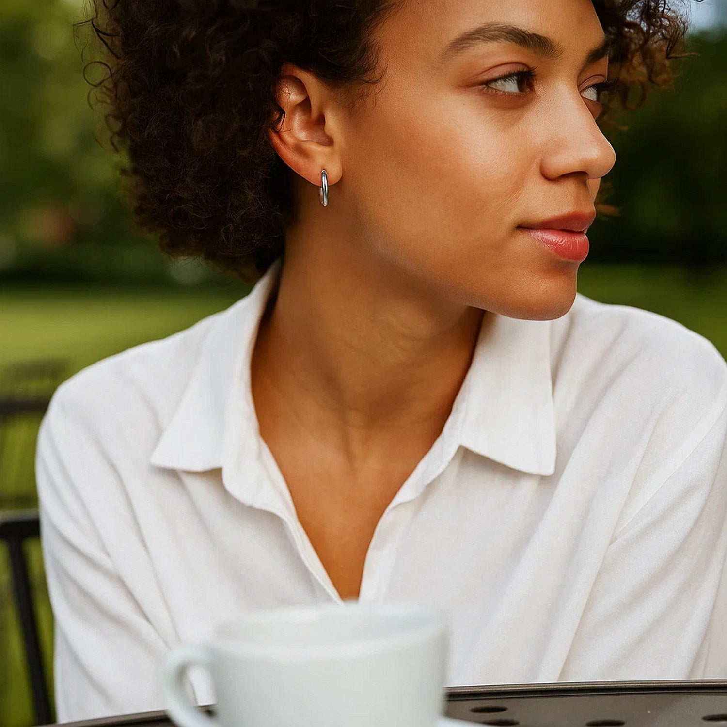 These timeless hoop earrings crafted in 10k white gold and measure 15 millimeters in diameter, featuring a snap lock backing.