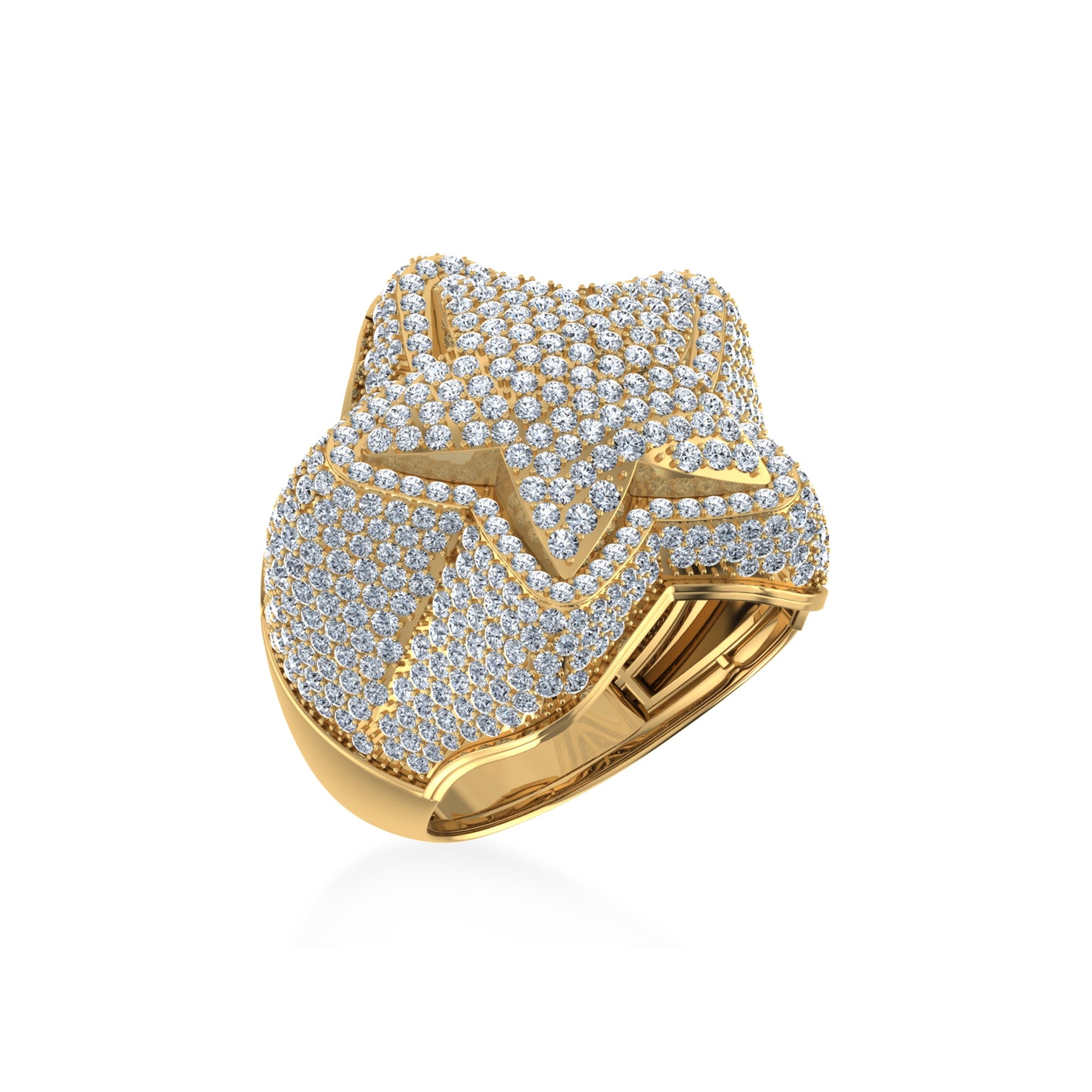 10K Yellow Gold Round Diamond Star Shape Designer Sz 10 Mens Ring 3/4 Cttw