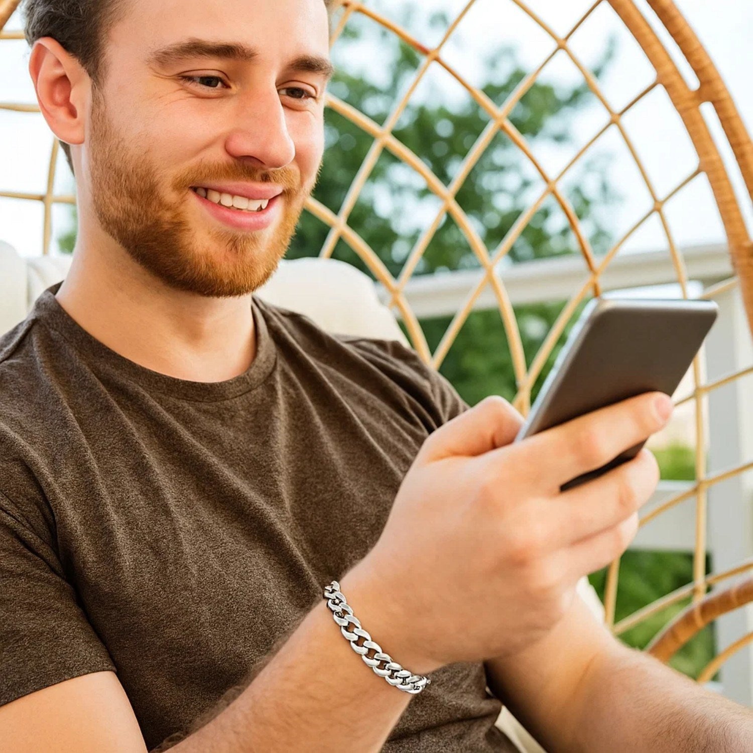 This Miami cuban semi solid bracelet comes in 14k white gold and has a width of 6.7 millimeters. Secured with a lobster clasp.