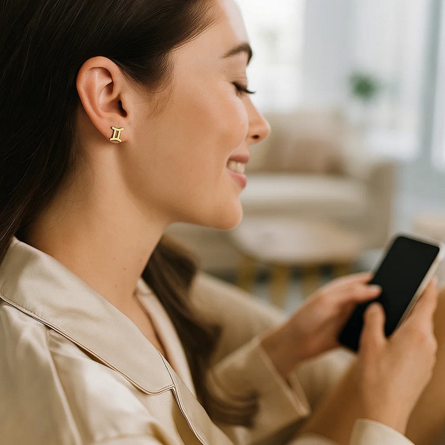 This set of Gemini Stud earrings is beautifully crafted in 14k yellow gold with a high polish finish & secures with universal backs. These beautiful studs are hand crafted & such a beautiful piece for that gemini in your life. Dont forget the matching necklace!