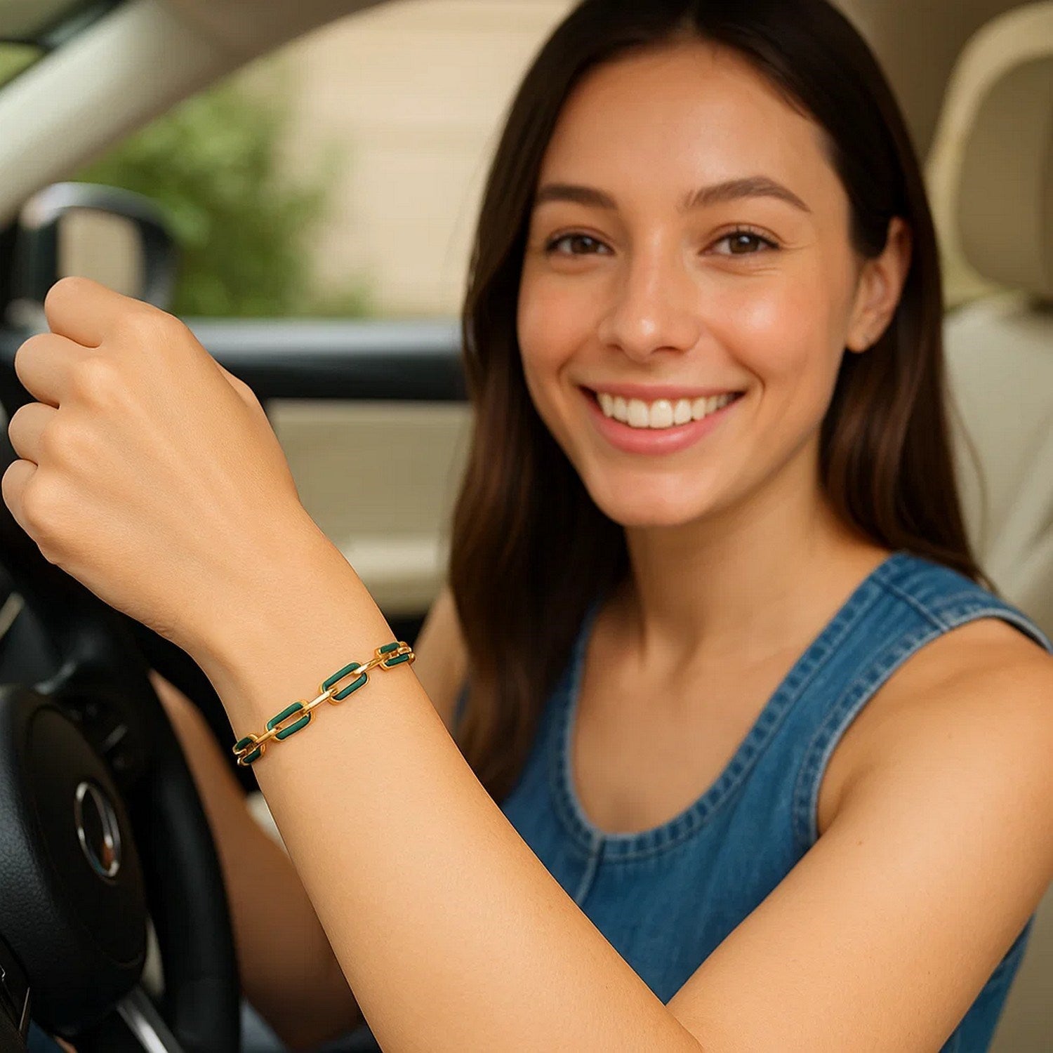 14k Yellow Gold Malachite Paperclip Gem Link Bracelet (7.00 mm)