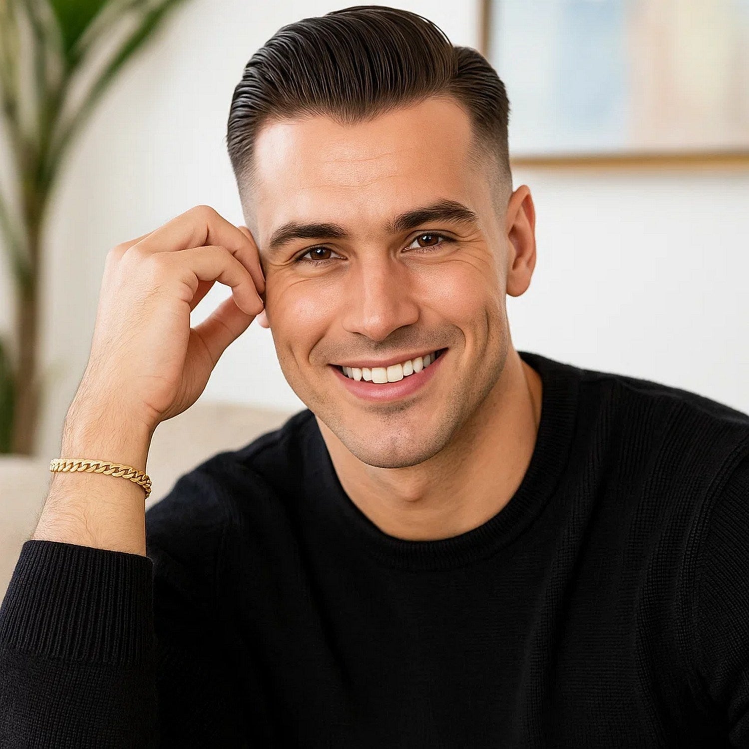 This Miami Cuban semi solid bracelet comes in 14k yellow gold and has a width of 5.5 millimeters. Secured with a lobster clasp.
