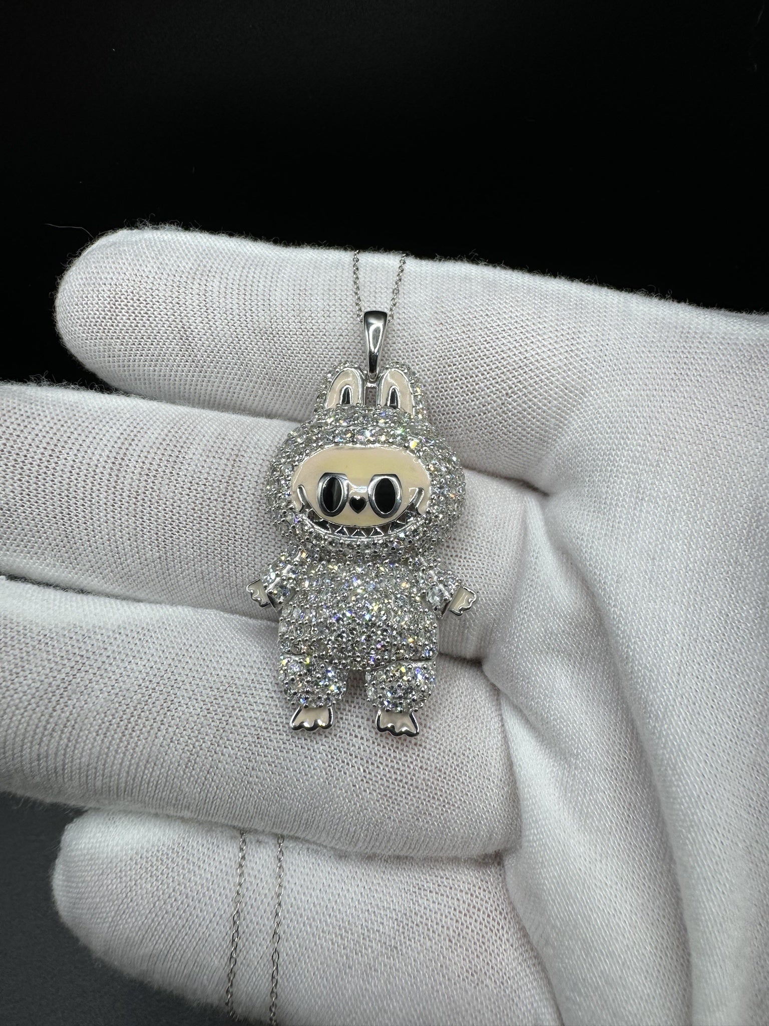 18” Chain & 2.5” Silver Peach Monster 2.5ctw VS/VVS Lab Diamond Pendant 3mm Bail 8.6g