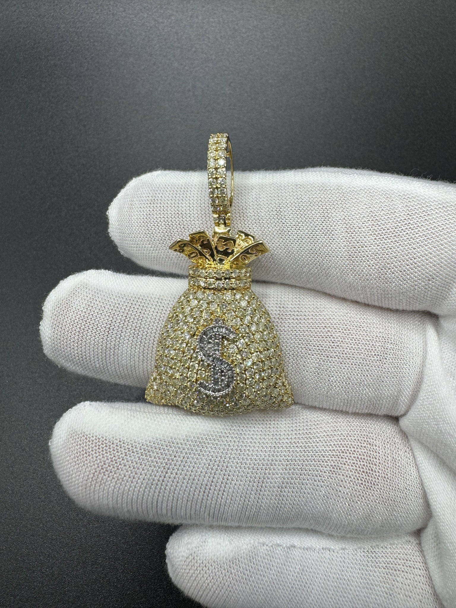 2” 10k Yellow Gold 2ctw Natural Diamond Money Bag Pendant 7.3mm Bail 9.0g