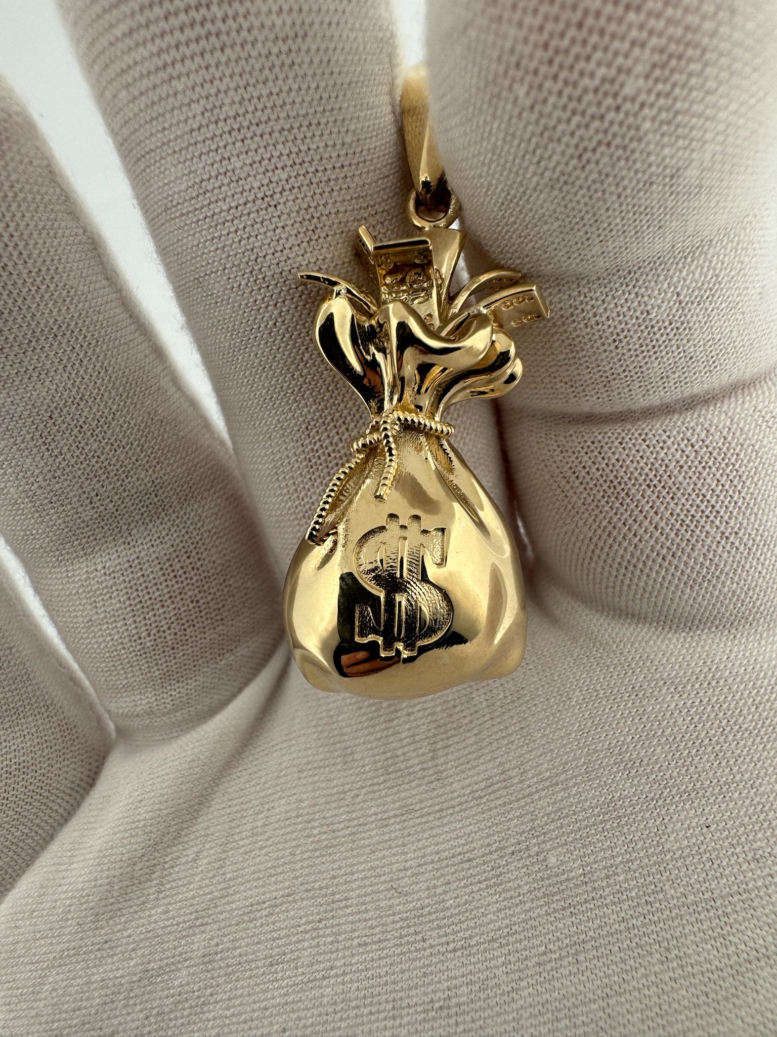 2” 14k Yellow Gold Money Bag Pendant 7mm Bail 12.81g