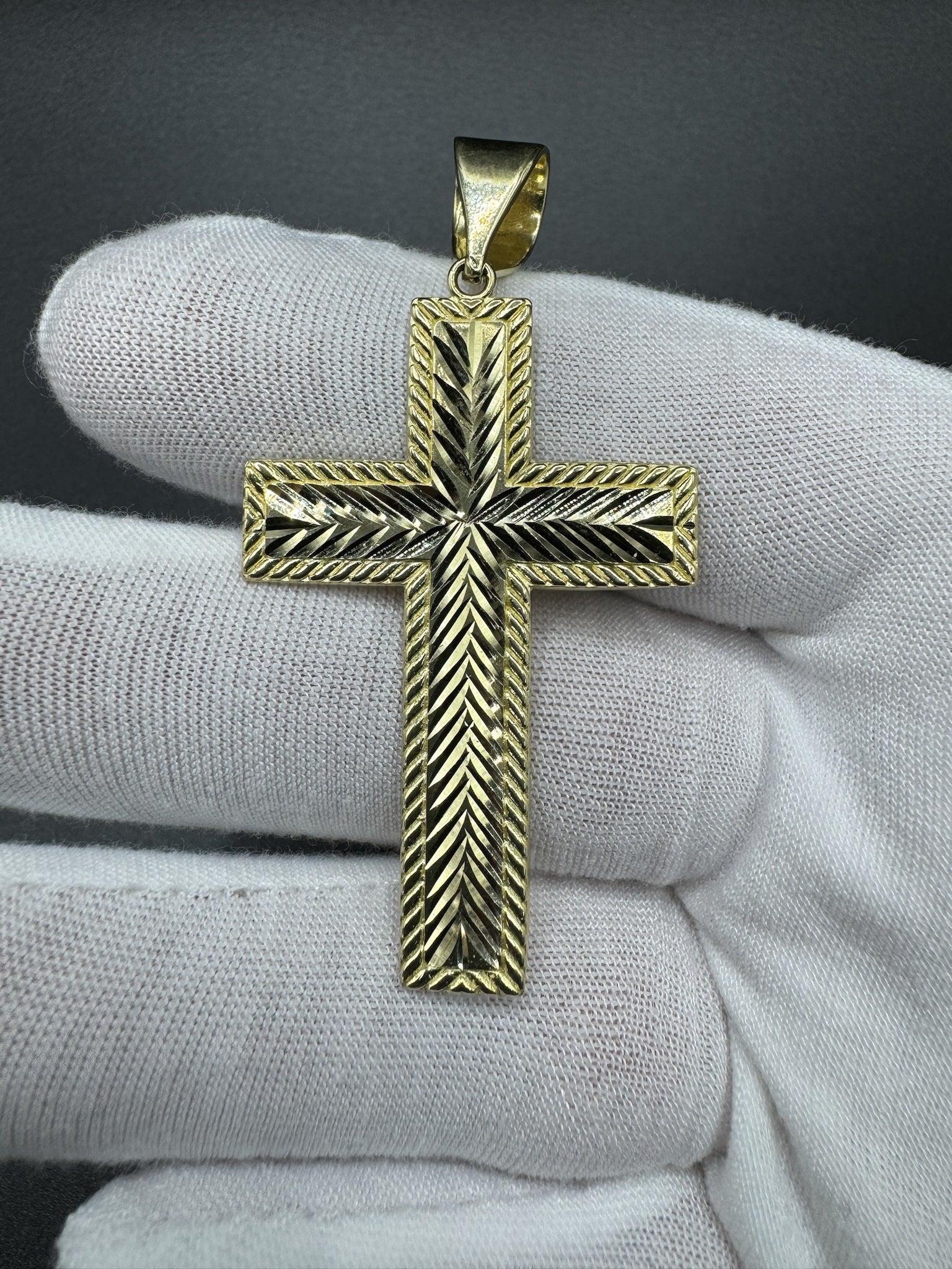 2.5” 14k Yellow Gold Diamond Cut Square Cross 7mm Bail 7.05g