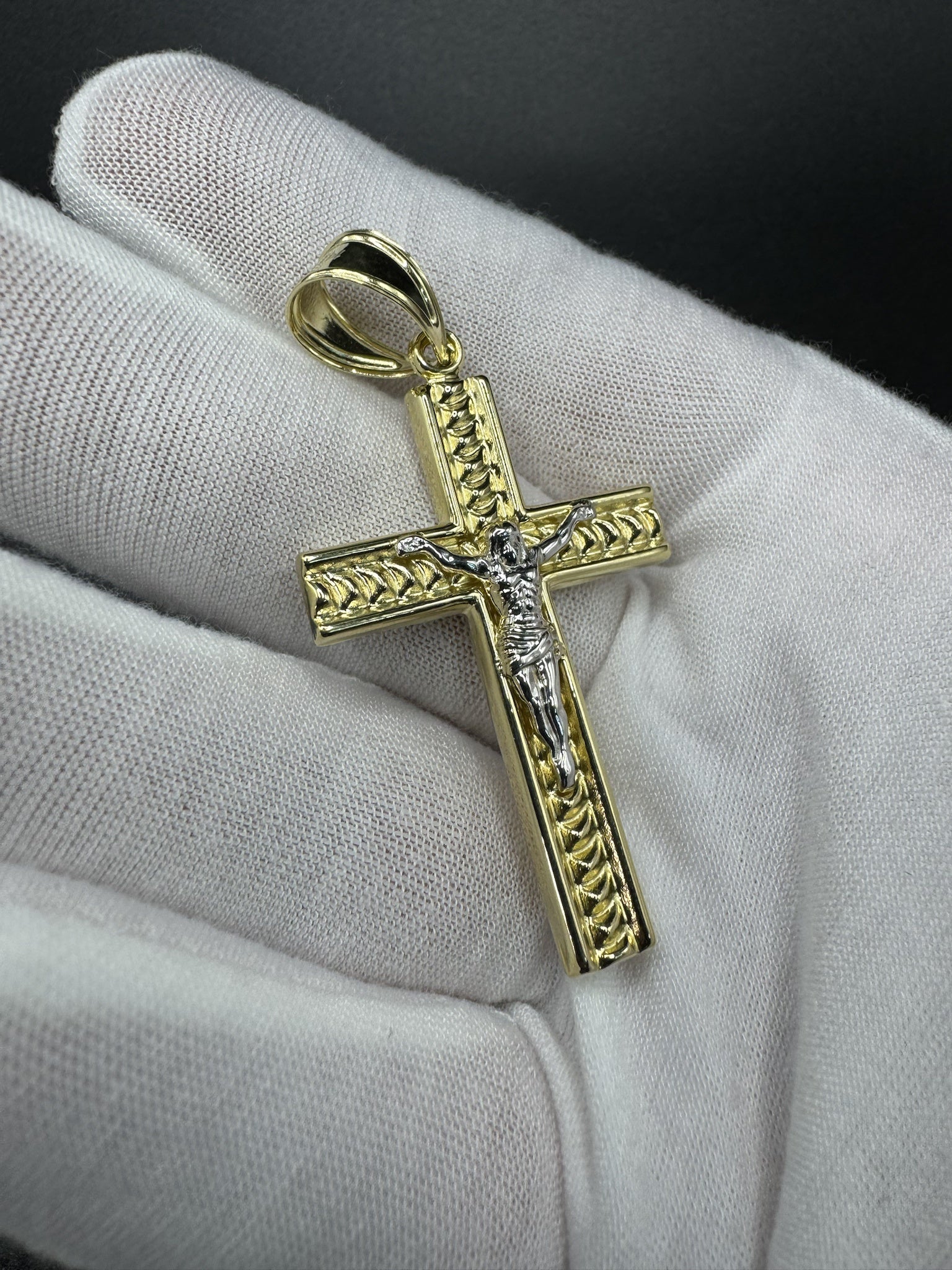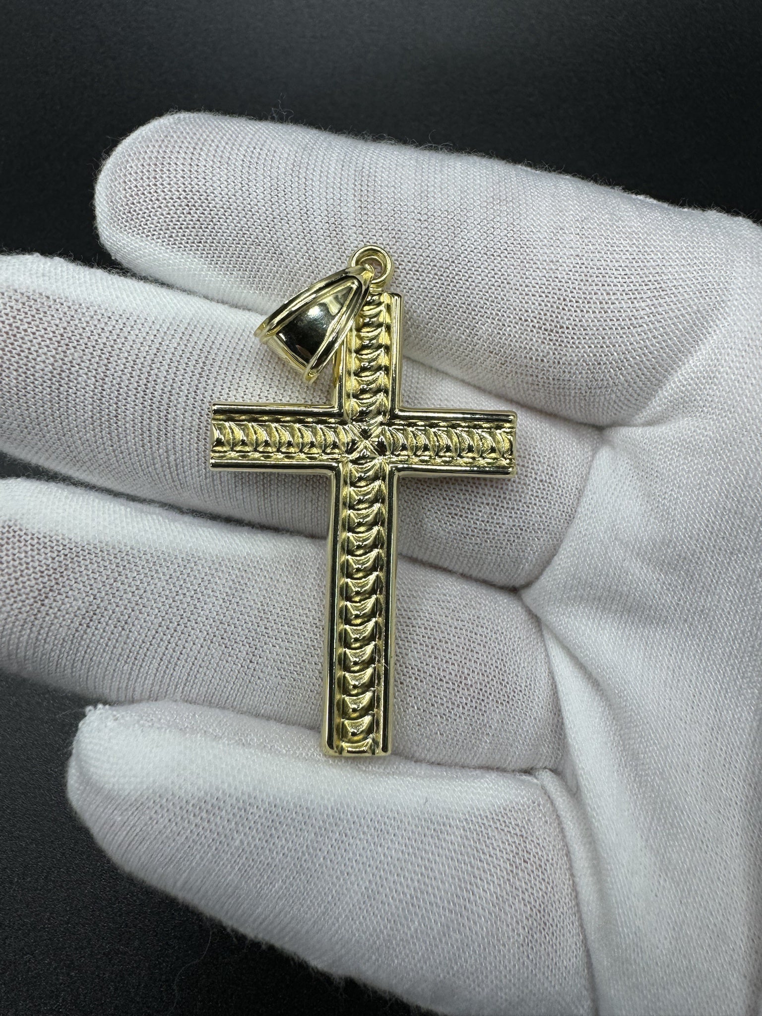 2.5” 14k Yellow Gold Square Diamond Cut Crucifix 8mm Bail 4.3g