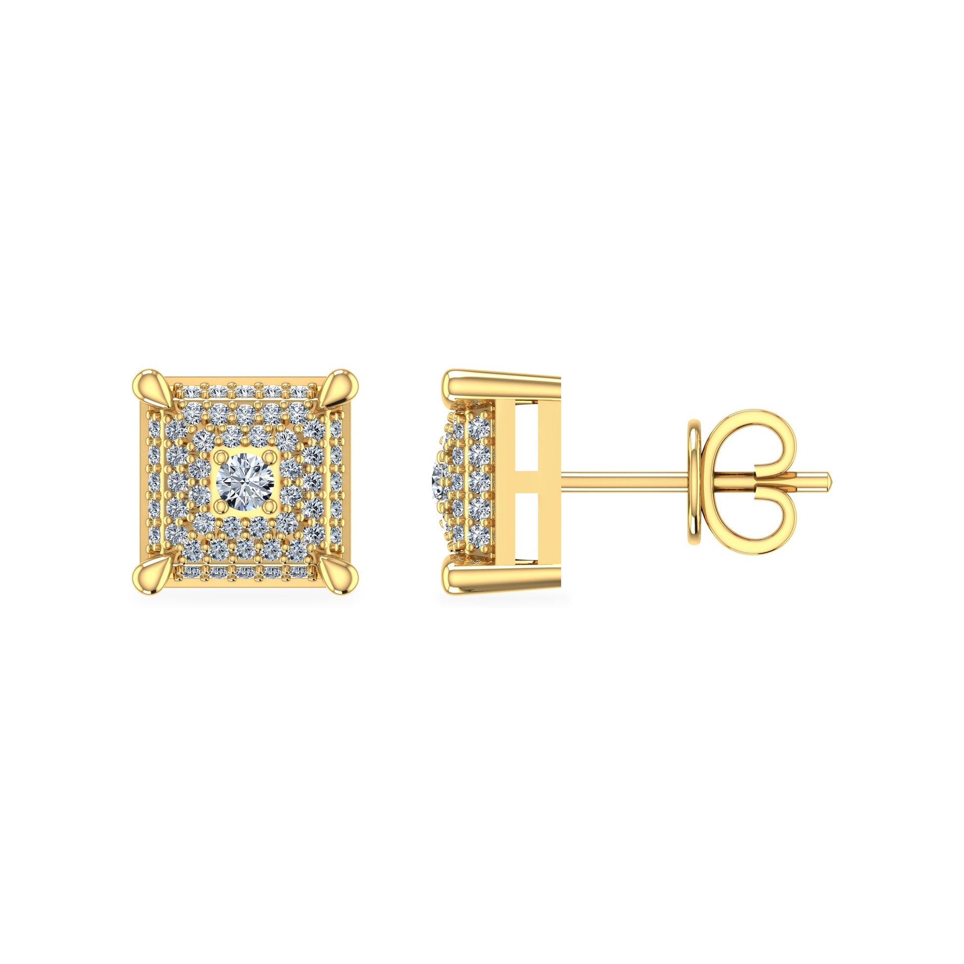10K Yellow Gold Round Diamond Square Shape Stud Earrings 1/3 Cttw