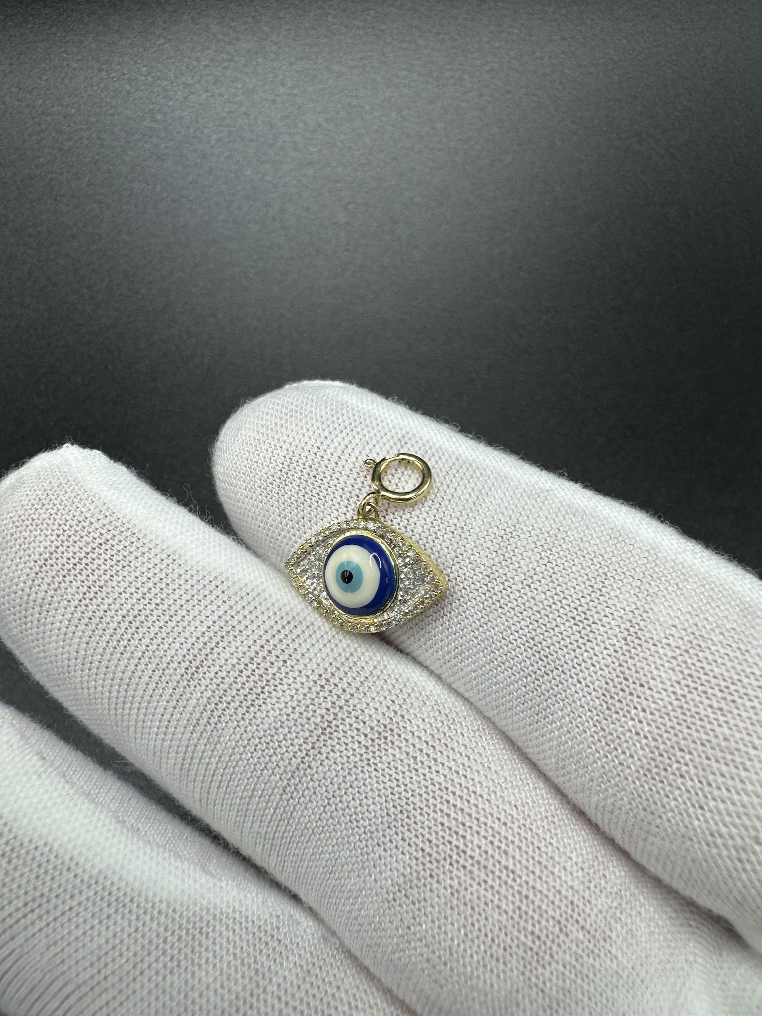 3/4” 10k Yellow Gold Evil Eye Pendant 1/3ctw Natural Diamond 3mm Bail 1.23g