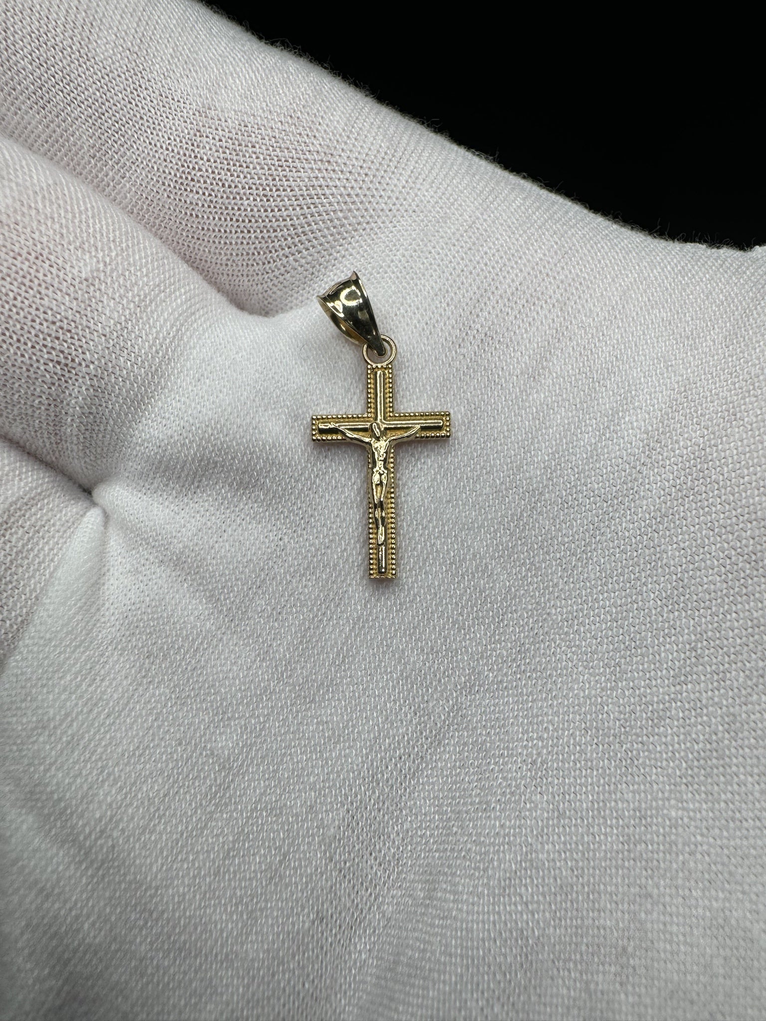 3/4” 14k Yellow Gold Square Crucifix 3.5mm Bail .8g