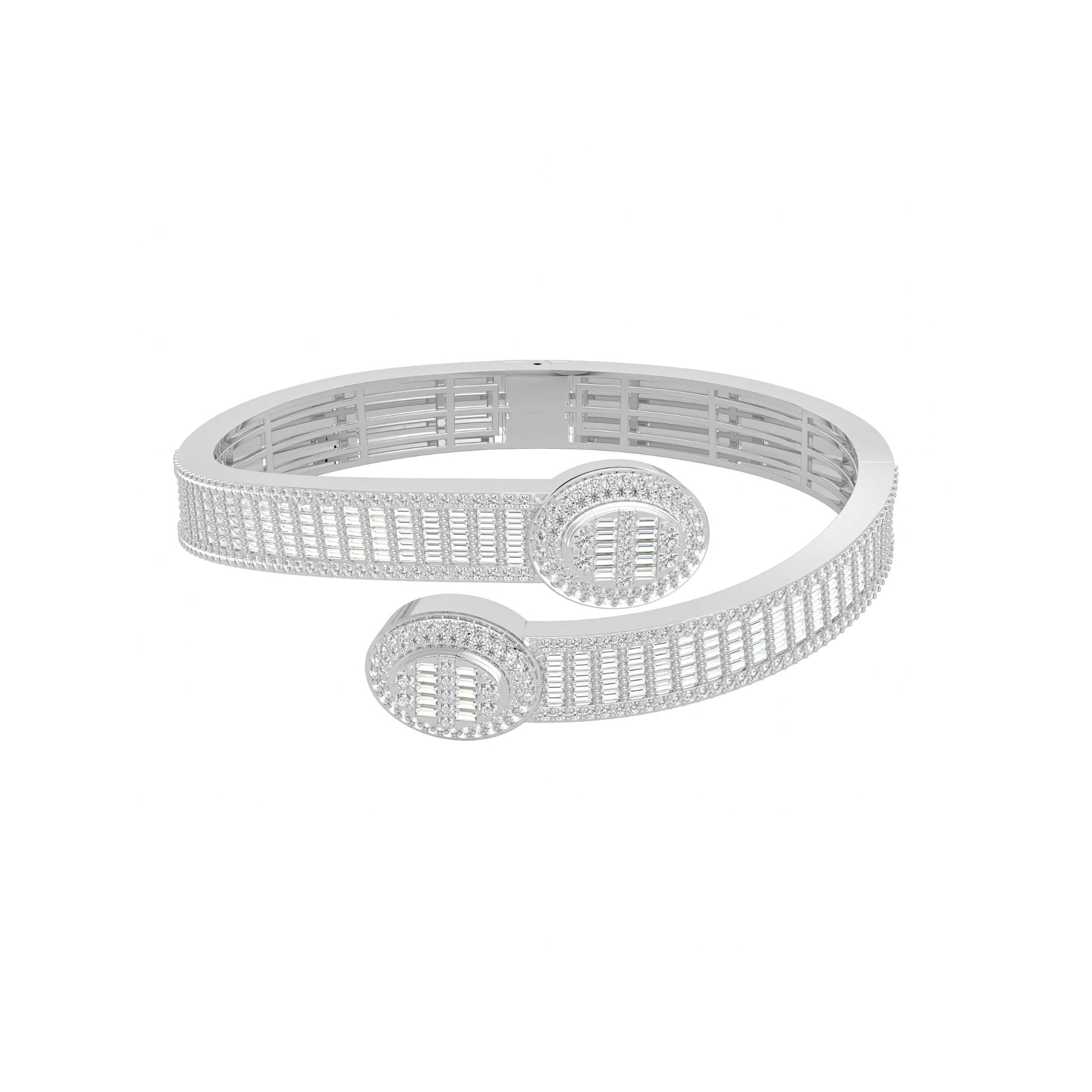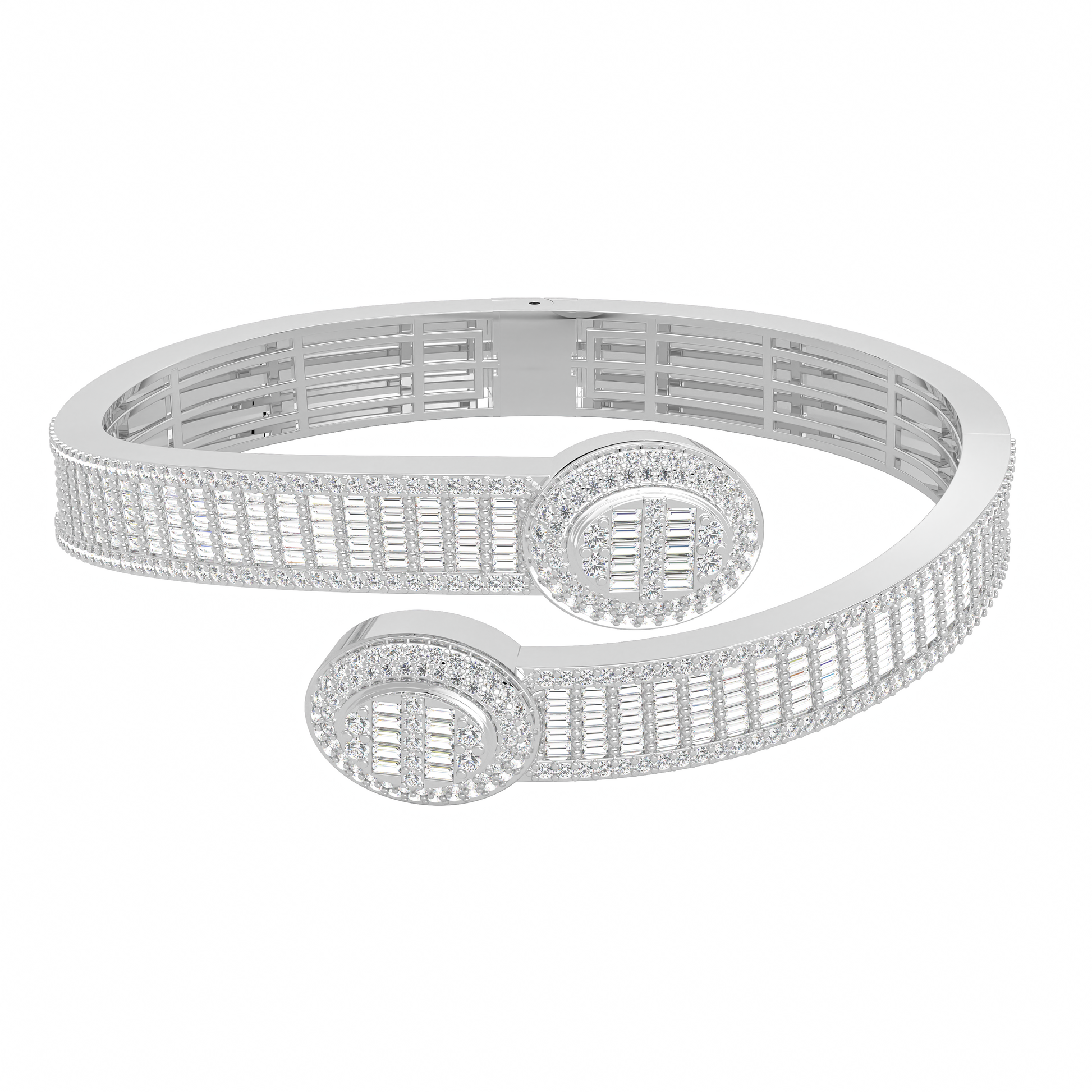 10K White Gold Tw Baguette Bangle Bracelet 5-1/2 Cttw