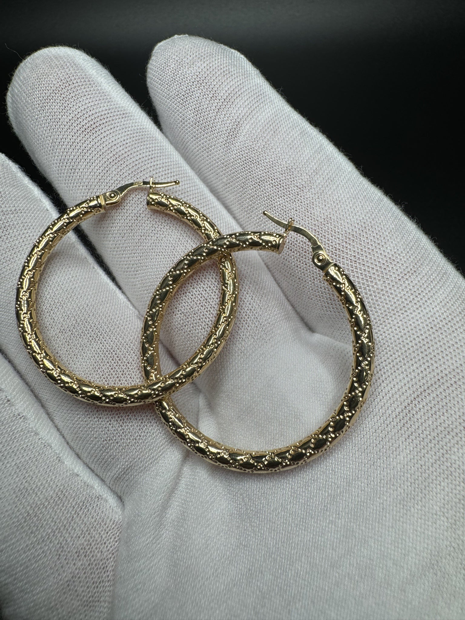 35mm 14k Yellow Gold Fancy Print Hoops 3.2g