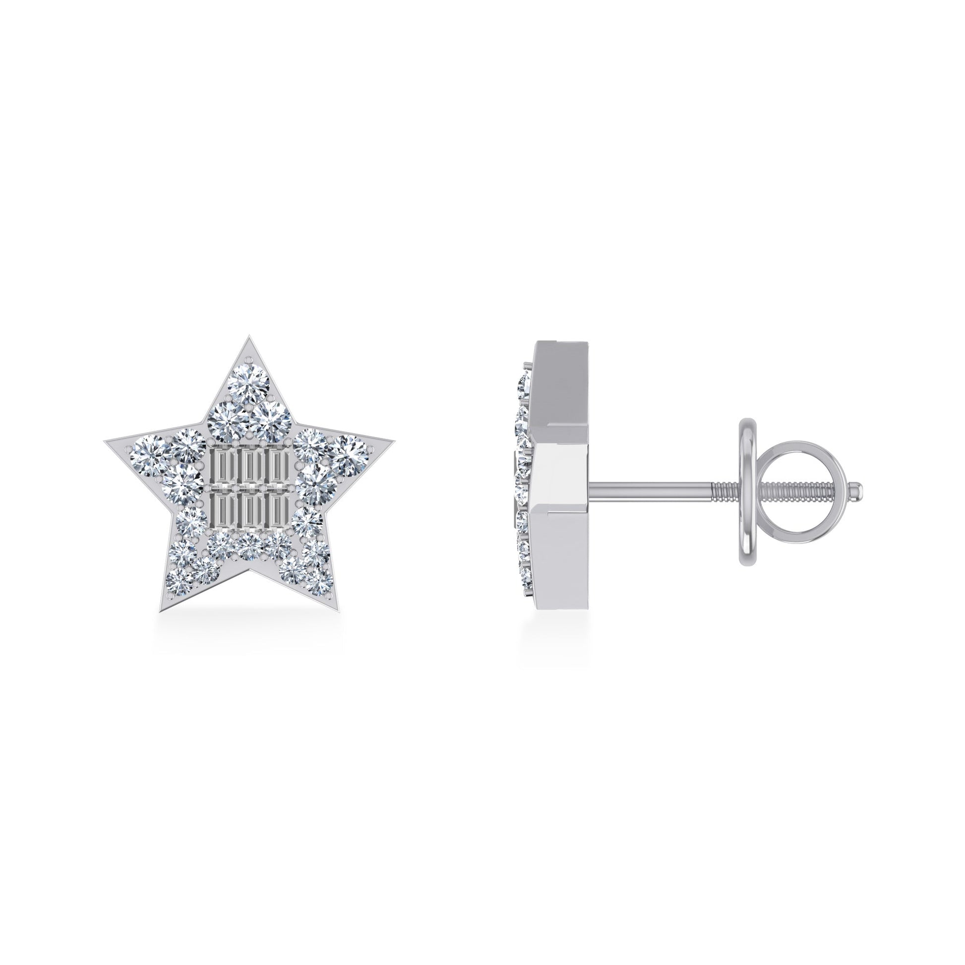 10K White Gold Round Baguette Diamond Star Shape Stud Earrings 1/4 Cttw