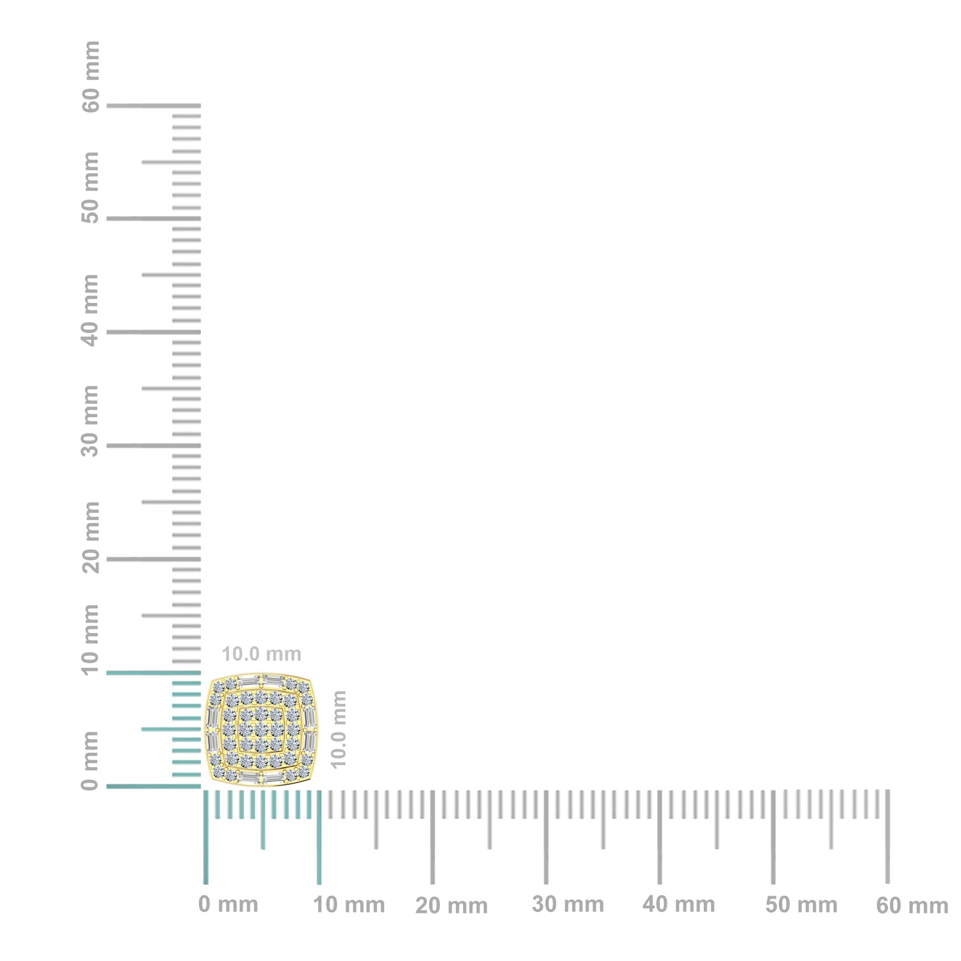 10K Yellow Gold Round Diamond Square Shape Stud Earrings 1/2 Cttw