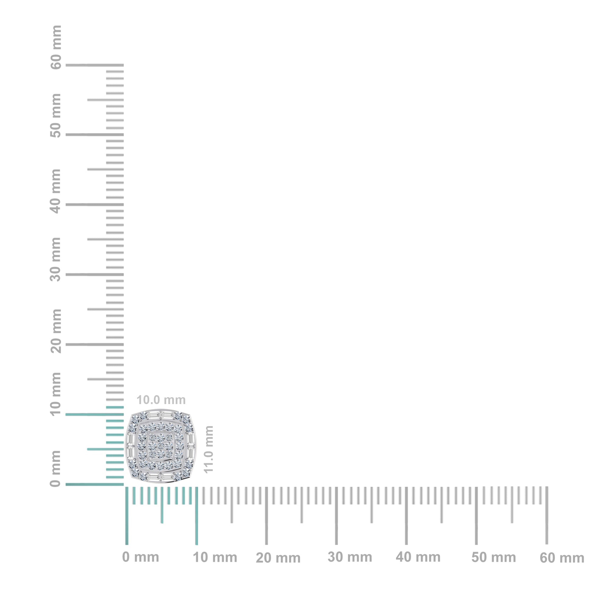 10K White Gold Round Diamond Square Shape Stud Earrings 5/8 Cttw