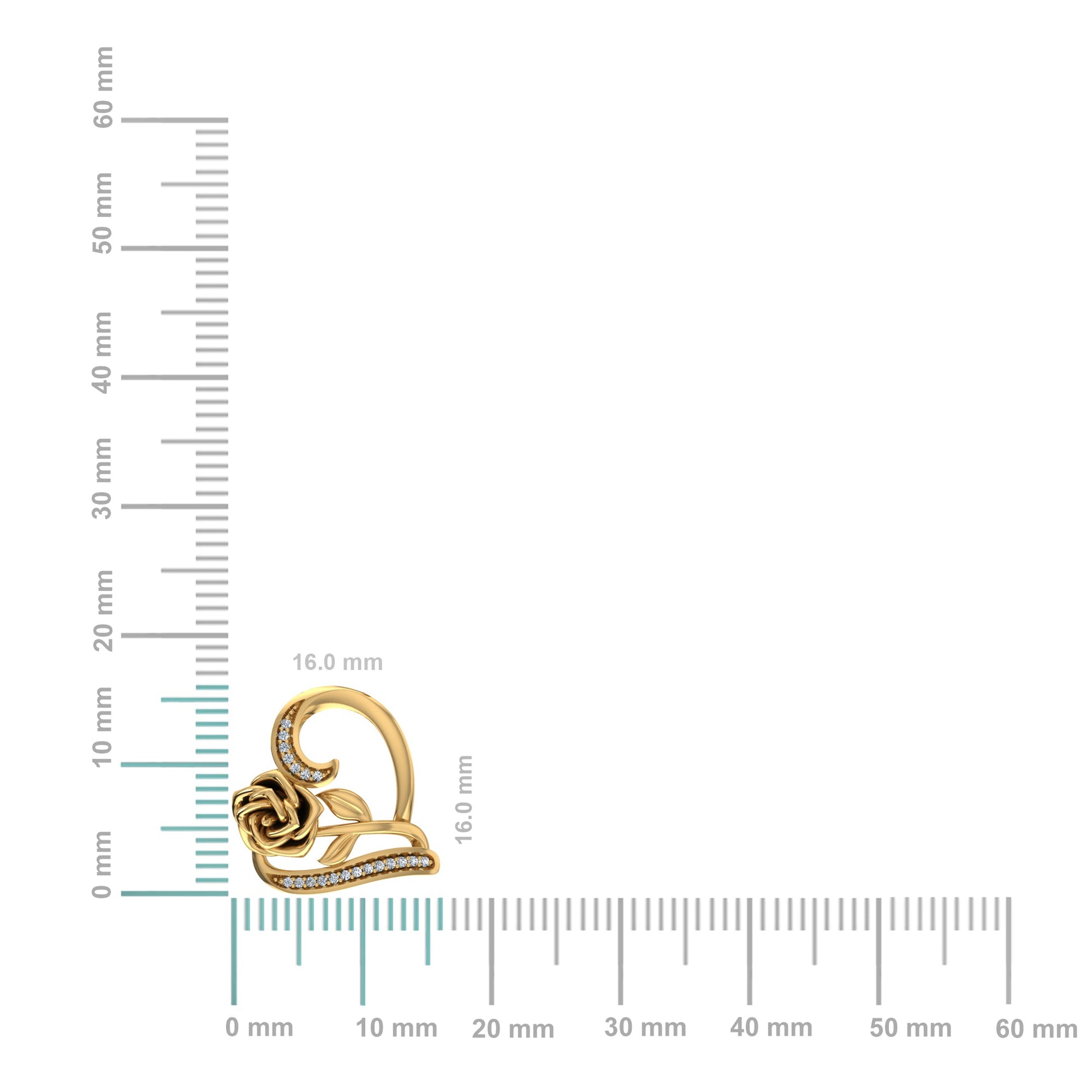 10K Yellow Gold Round Diamond Womens Heart Rose Heart Pendant 1/25 Cttw
