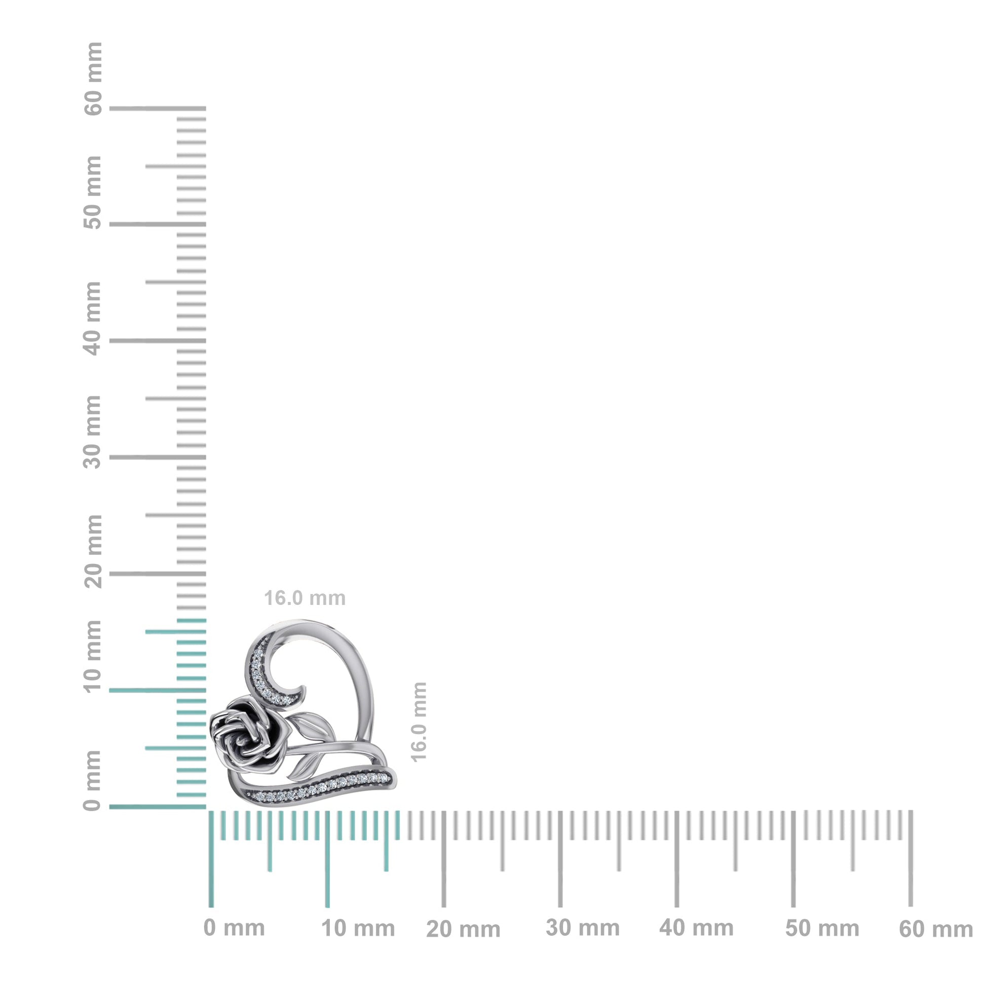 10K White Gold Round Diamond Womens Heart Rose Heart Pendant 1/25 Cttw