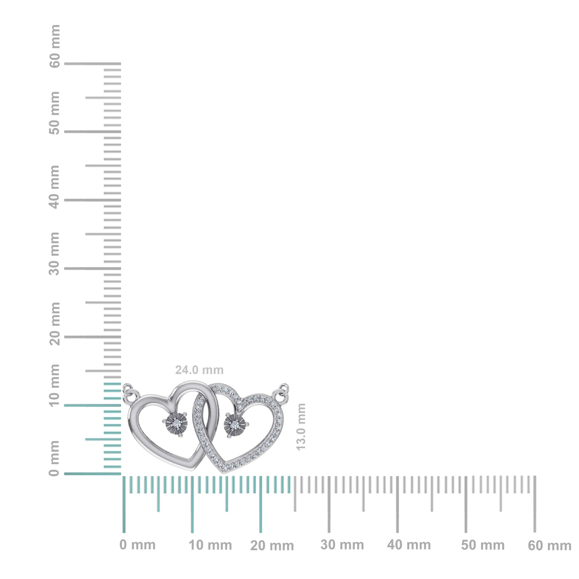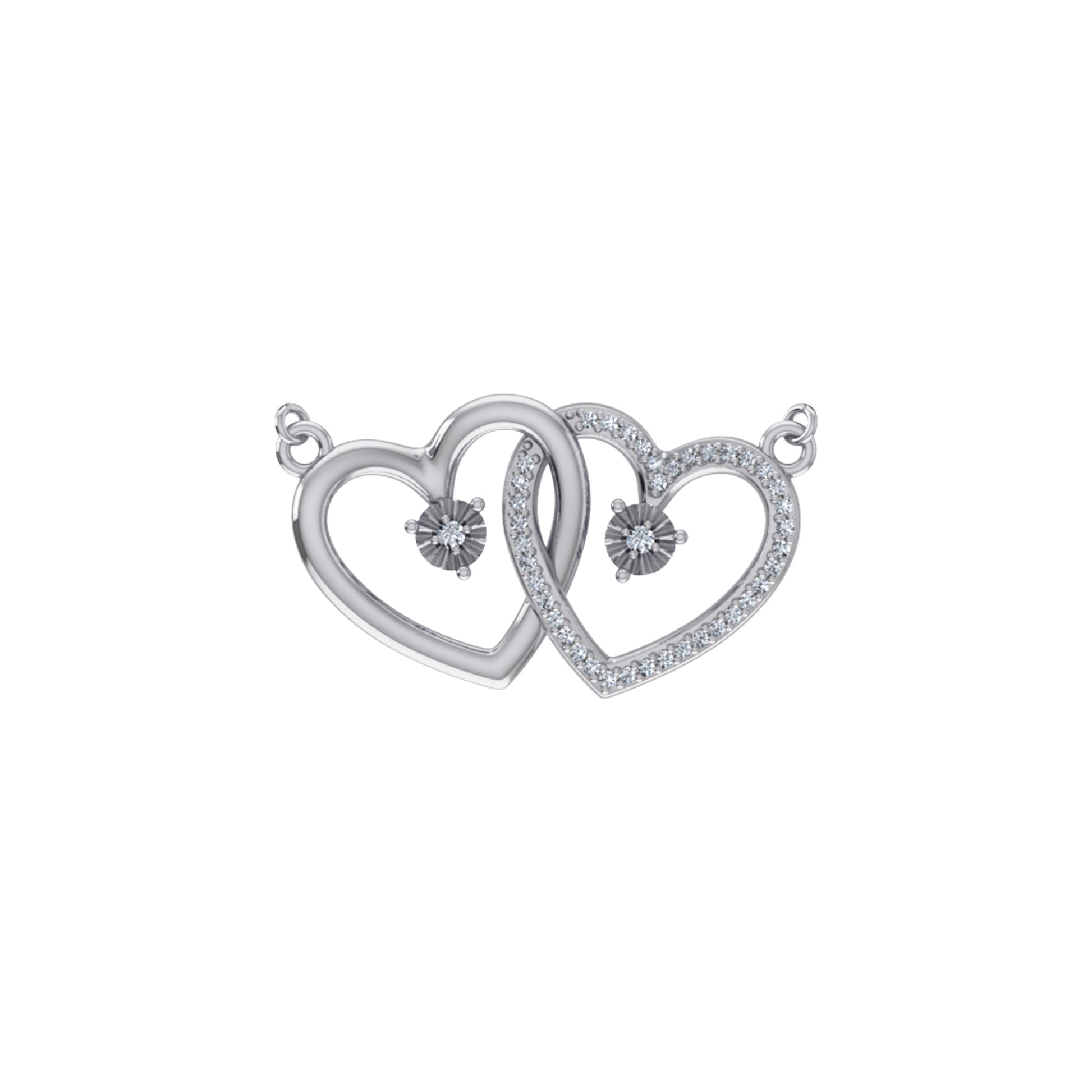 10K White Gold Round Diamond Womens Double Heart Pendant 1/10 Cttw