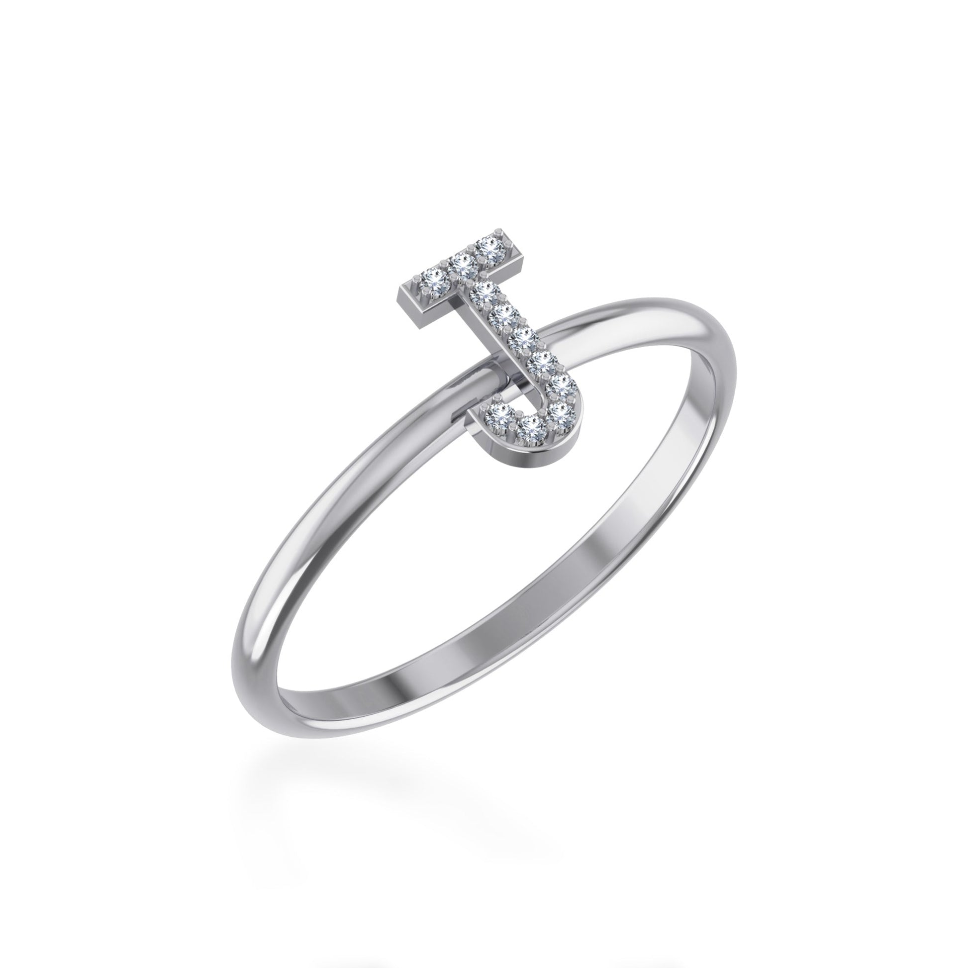 10K White Gold Womens Round Diamond J Initial Letter Ring 1/25 Cttw