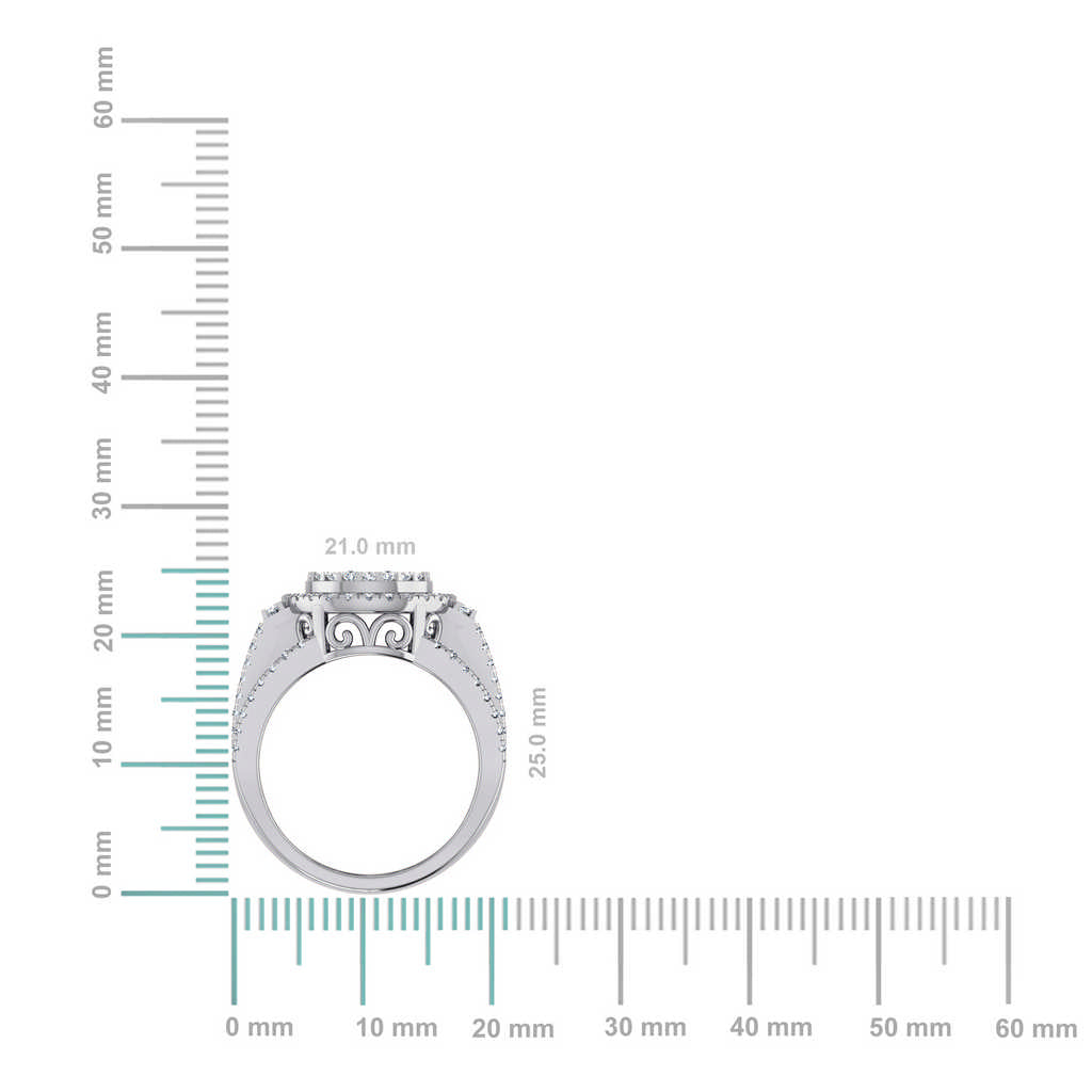 10K White Gold Round Diamond Halo Big Bridal Cluster Ring 1-5/8 Cttw
