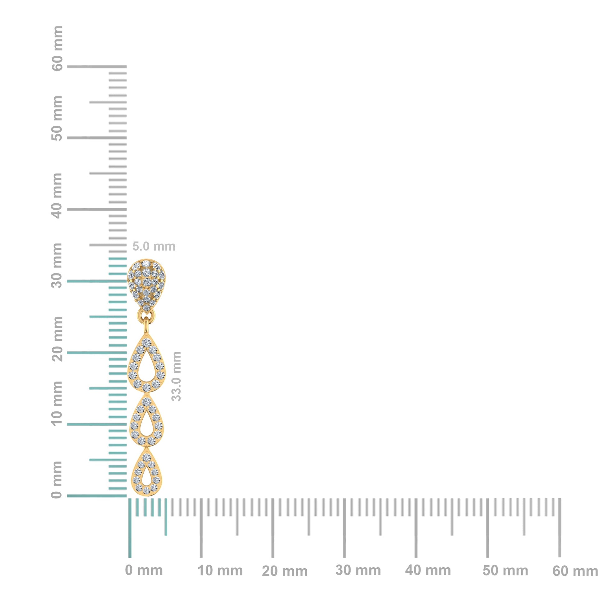 10K Yellow Gold Round Diamond Drop Shape Dangling Earrings 3/4 Cttw