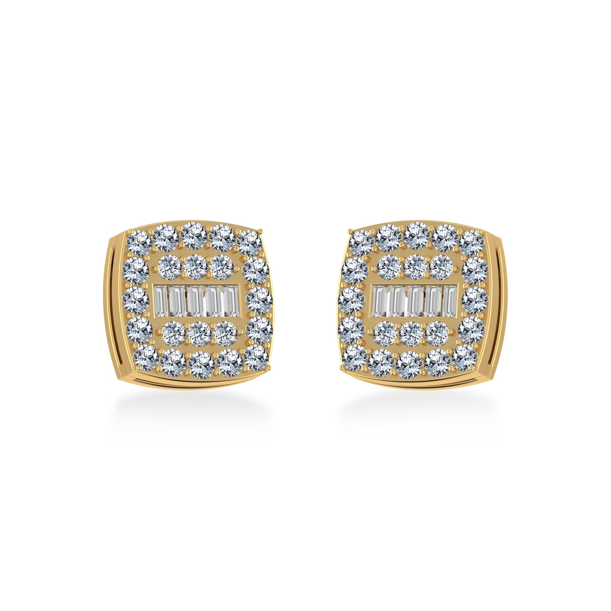 14K Yellow Gold Round Baguette Diamond Square Shape Cluster Stud EarRing 1/2 Cttw