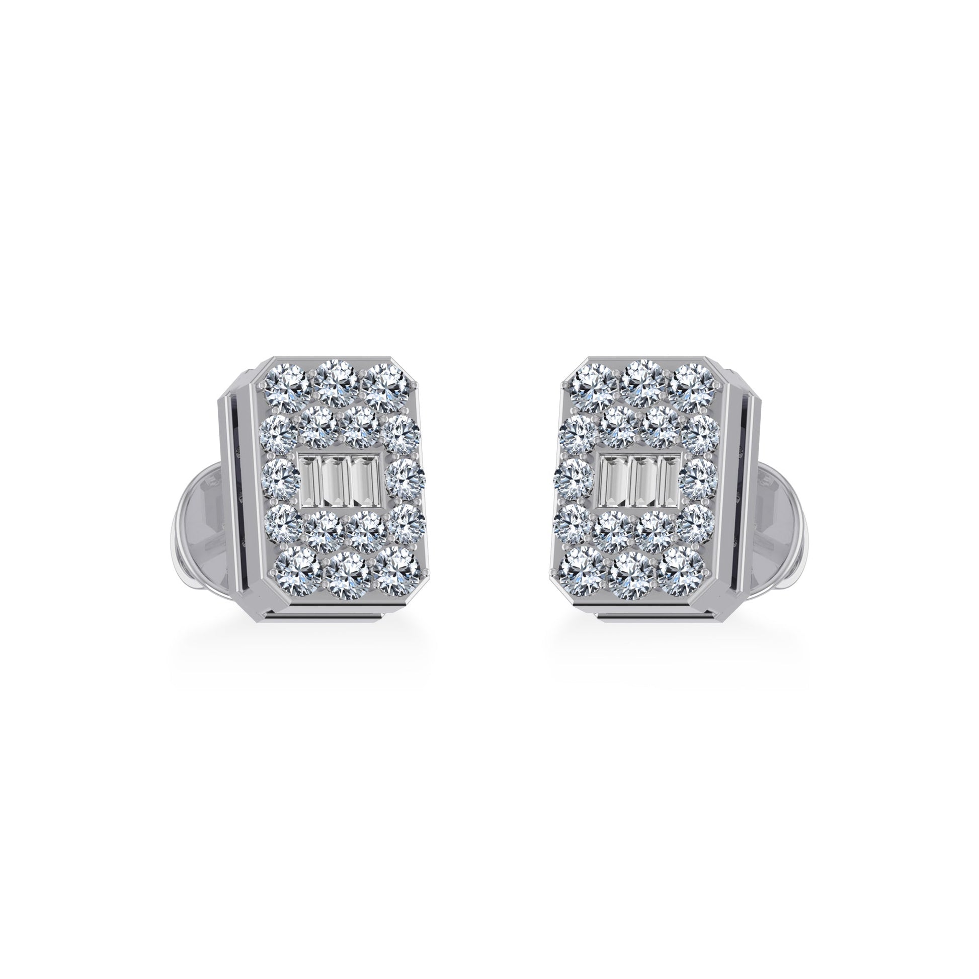 14K White Gold Baguette Diamond Emerald Shape Cluster Stud EarRing 1/5 Cttw