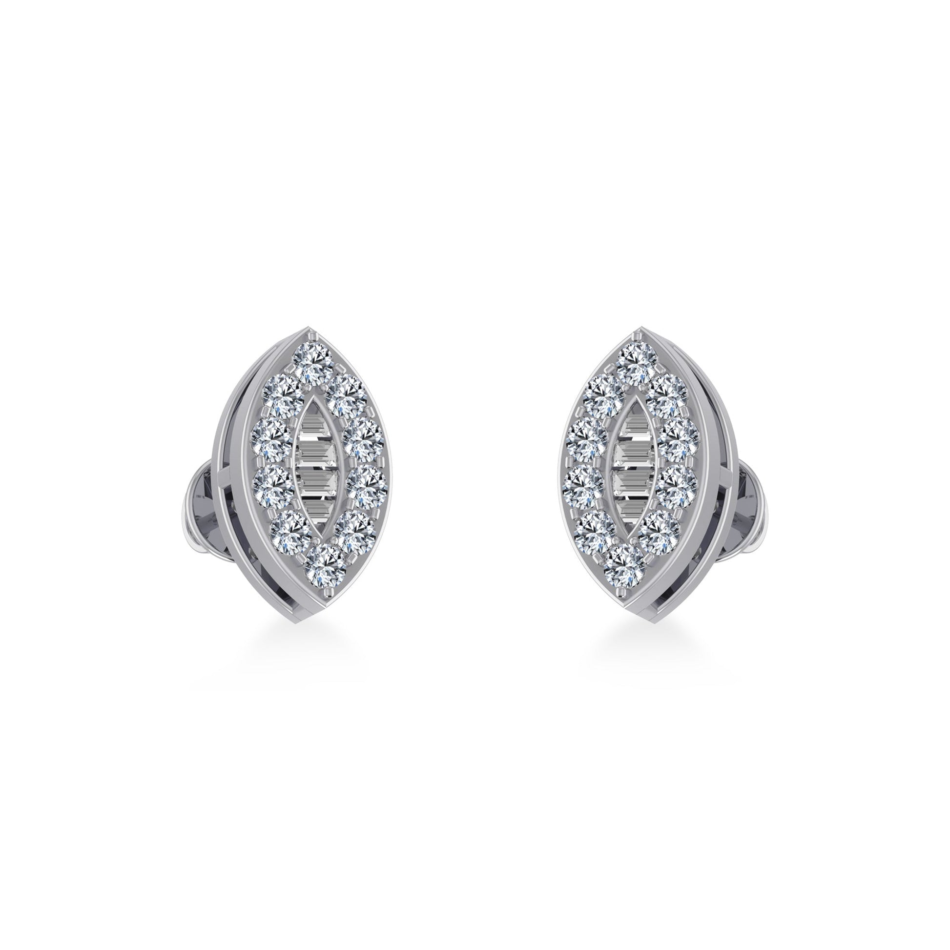 14K White Gold Baguette Diamond Marquise Shape Stud Earring 1/4 Cttw