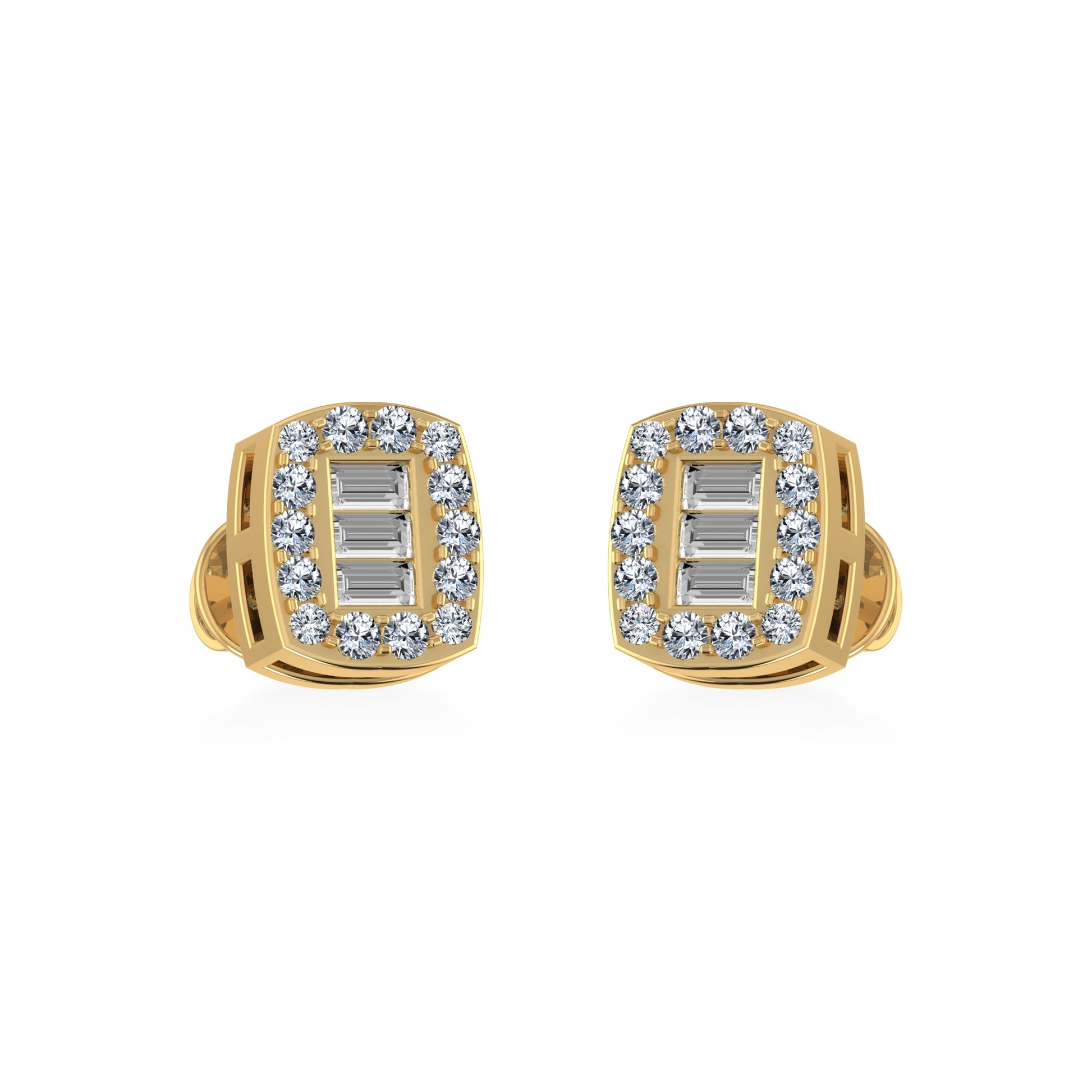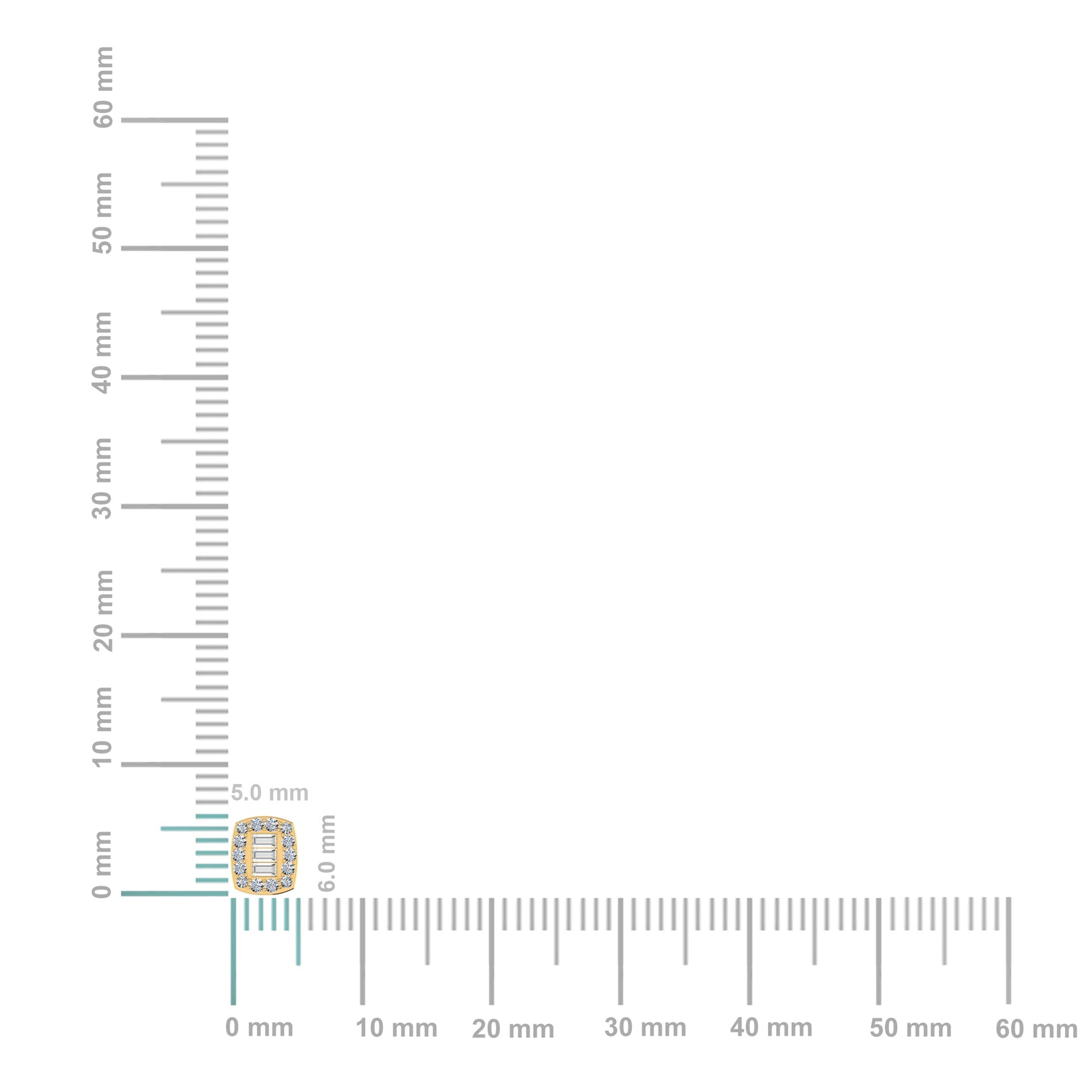 14K Yellow Gold Round Baguette Diamond Stud Earrings 1/5 Cttw