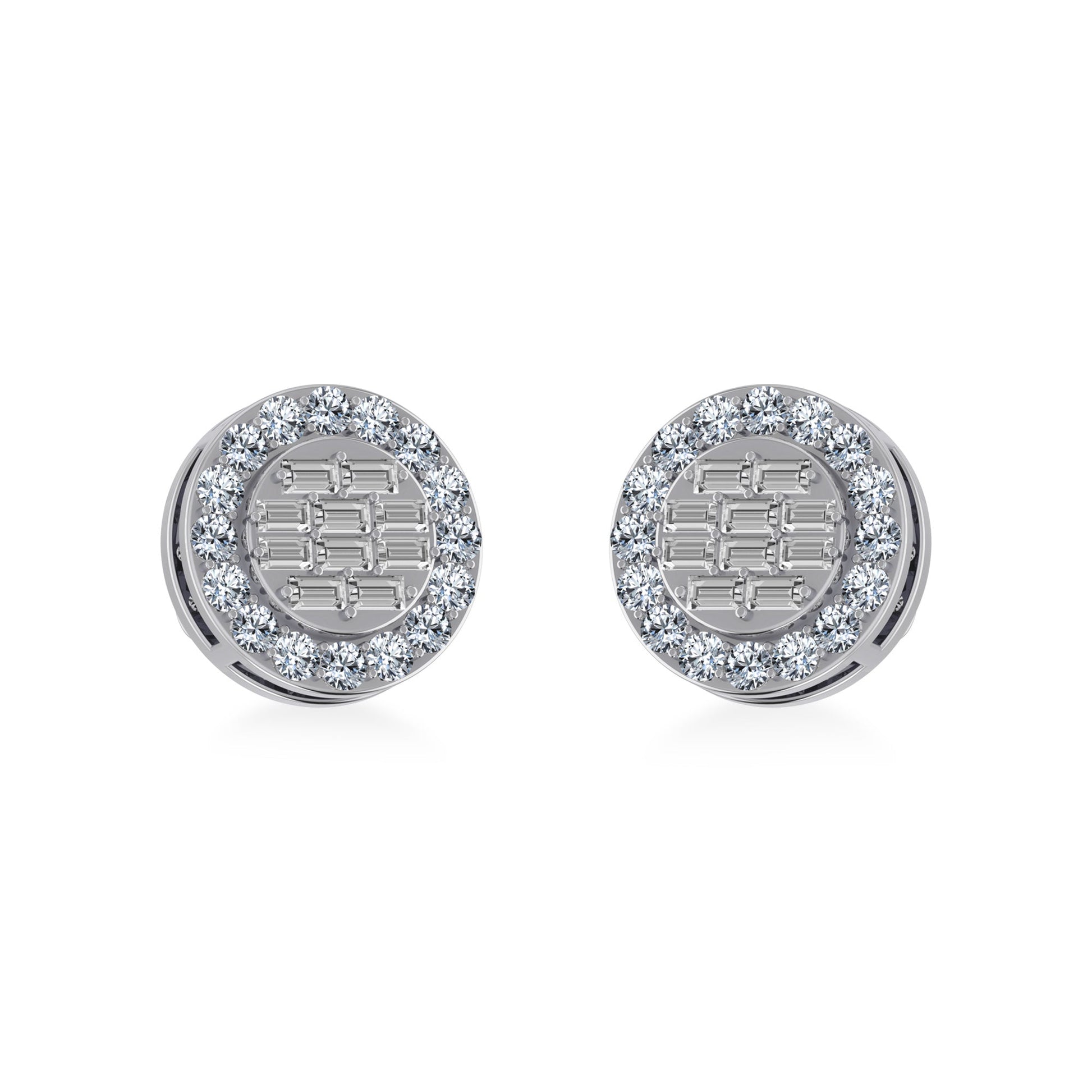 14K White Gold Round Baguette Diamond Halo Stud Earrings 1/2 Cttw