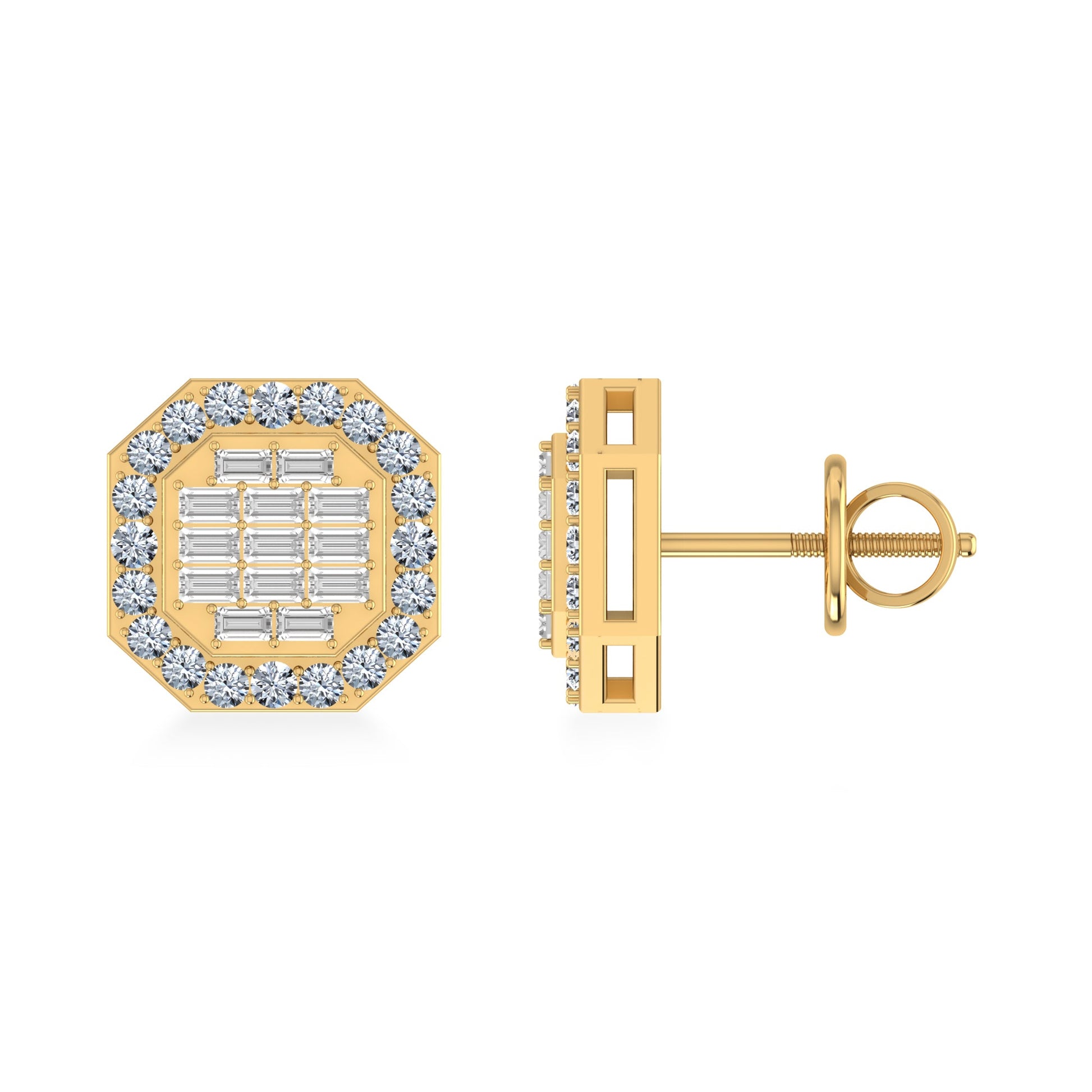 14K Yellow Gold Round Baguette Diamond Designer Stud Earrings 1/2 Cttw