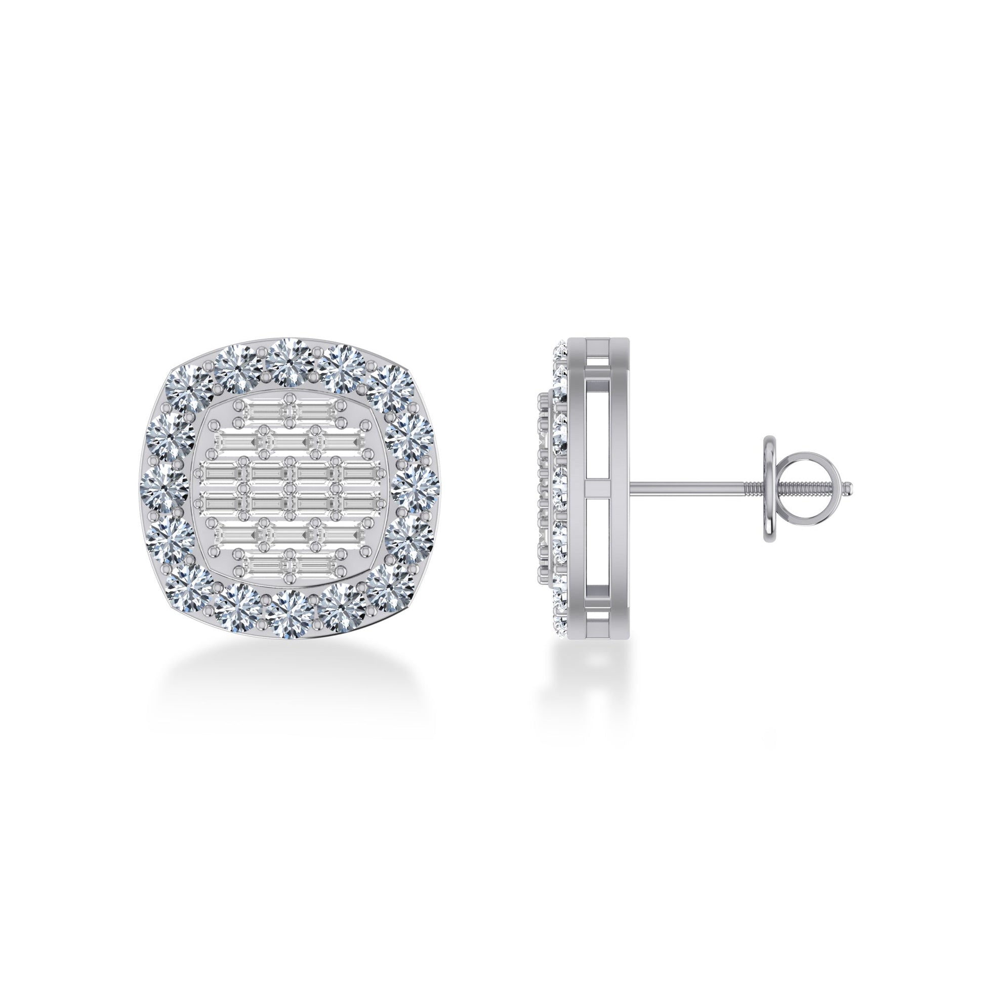 14K White Gold Round Baguette Diamond Square Shape Stud Earrings 1 Cttw