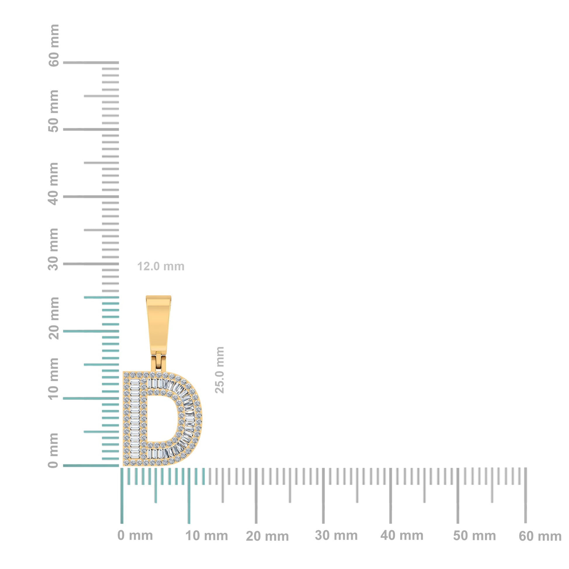 10K Yellow Gold Baguette Diamond Initial D Letter Pendant 1/2 Cttw