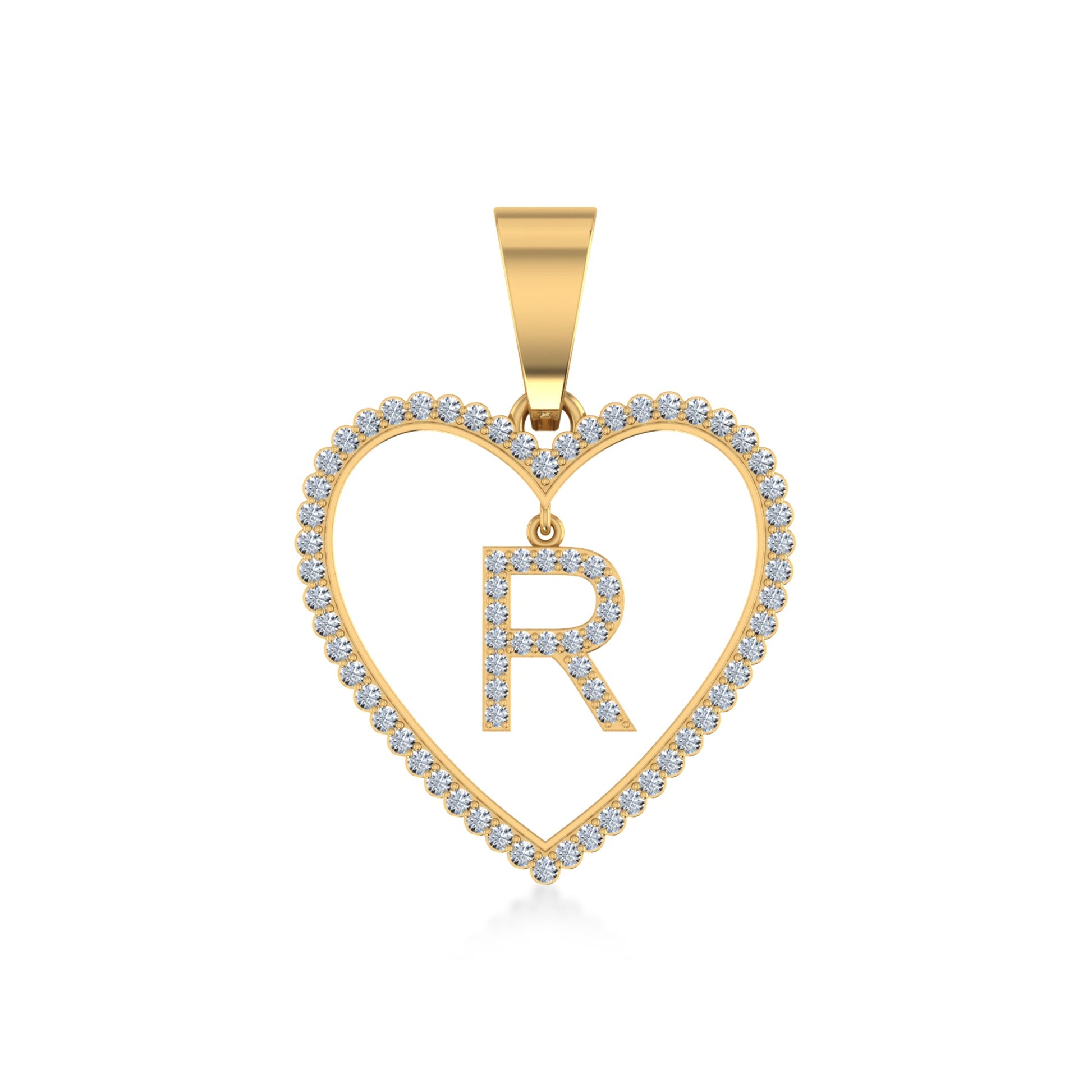 10K Yellow Gold Diamond Initial Heart R Letter Pendant 1/4 CTTW