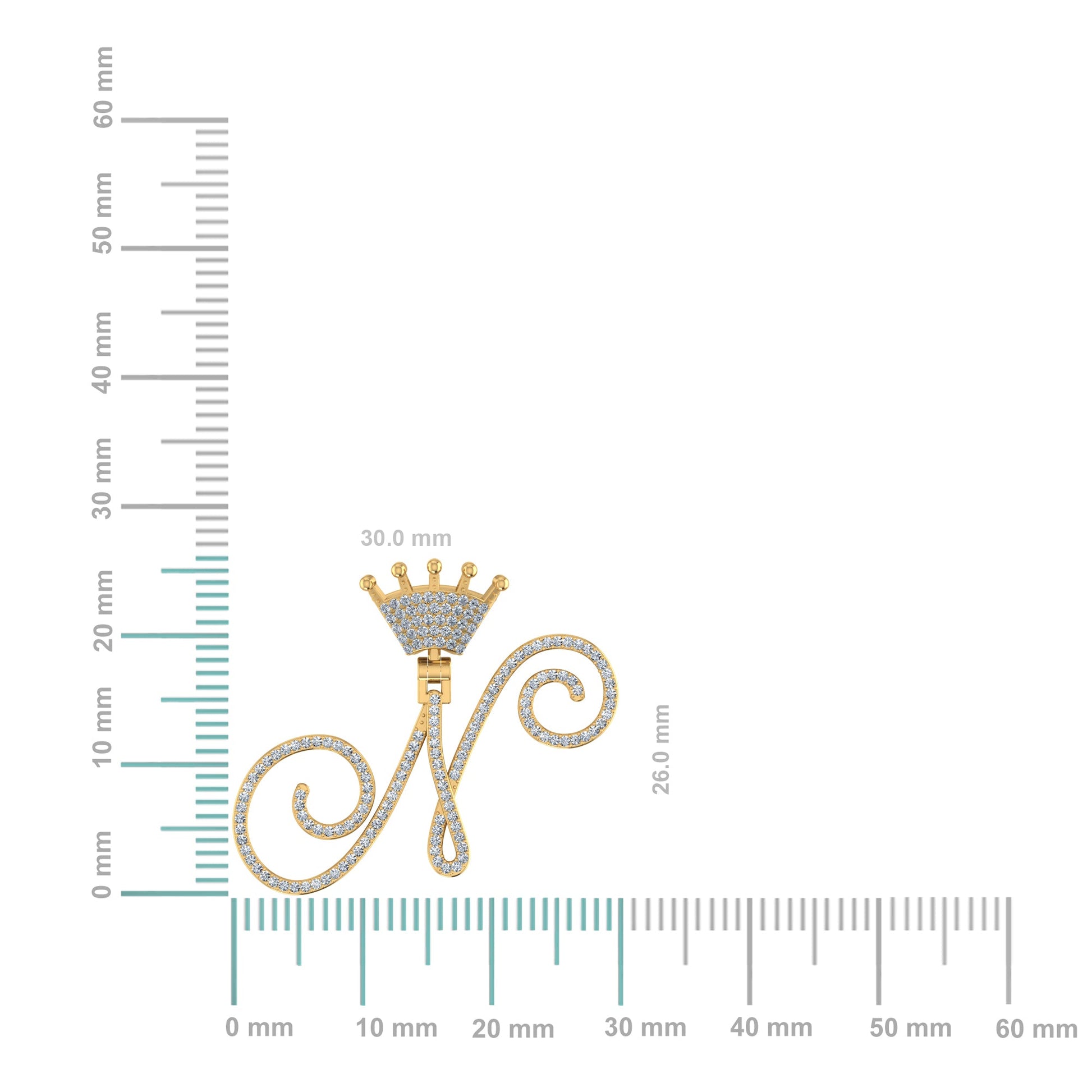 10K Yellow Gold Round Diamond Crown N Letter Initial Pendant 1/4 Cttw