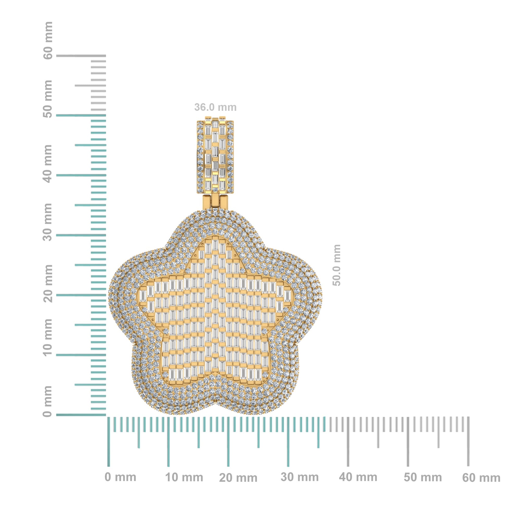 10K Yellow Gold Round Baguette Diamond Star Designer Charm Pendant 3-3/4 Cttw