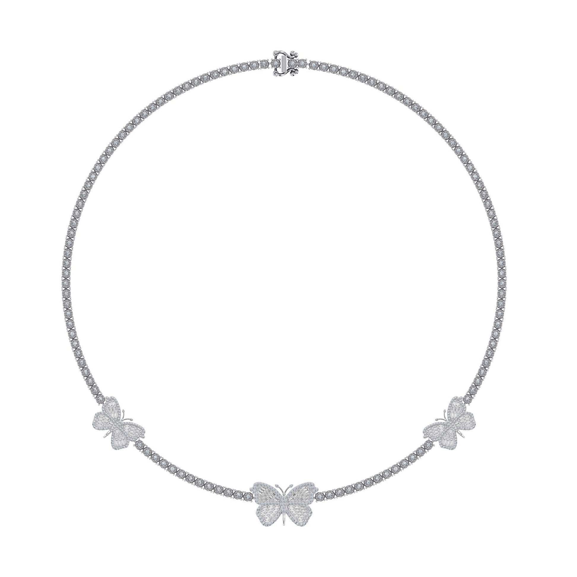 10K White Gold Round Baguette Diamond Butterfly Designer 18 Inch Necklace 1-7/8 Cttw