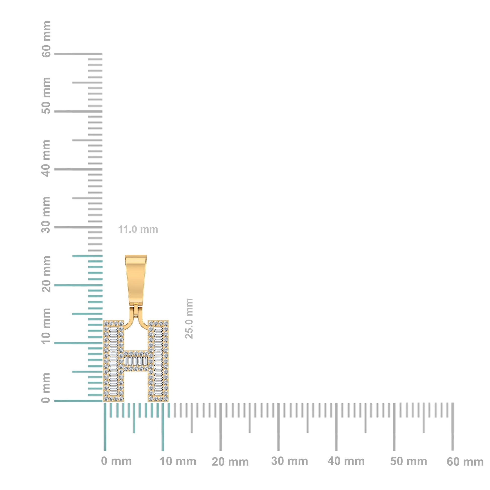 10K Yellow Gold Baguette Diamond Initial H Letter Pendant 1/2 Cttw