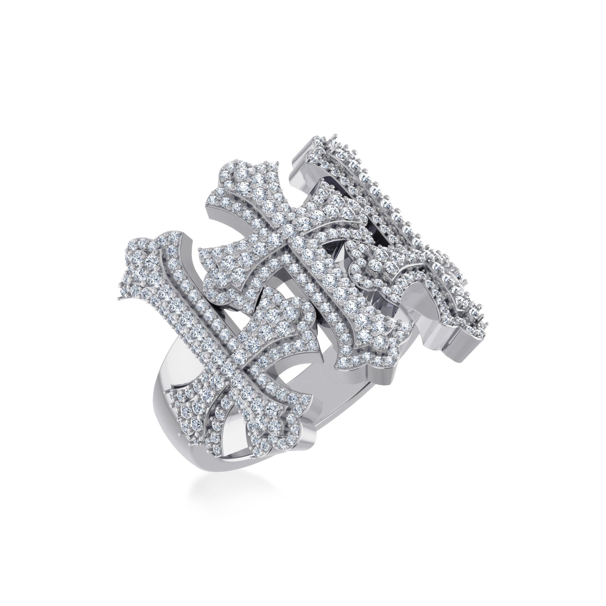 10K White Gold Three Cross Religious Mens Rings 1-3/8 Cttw