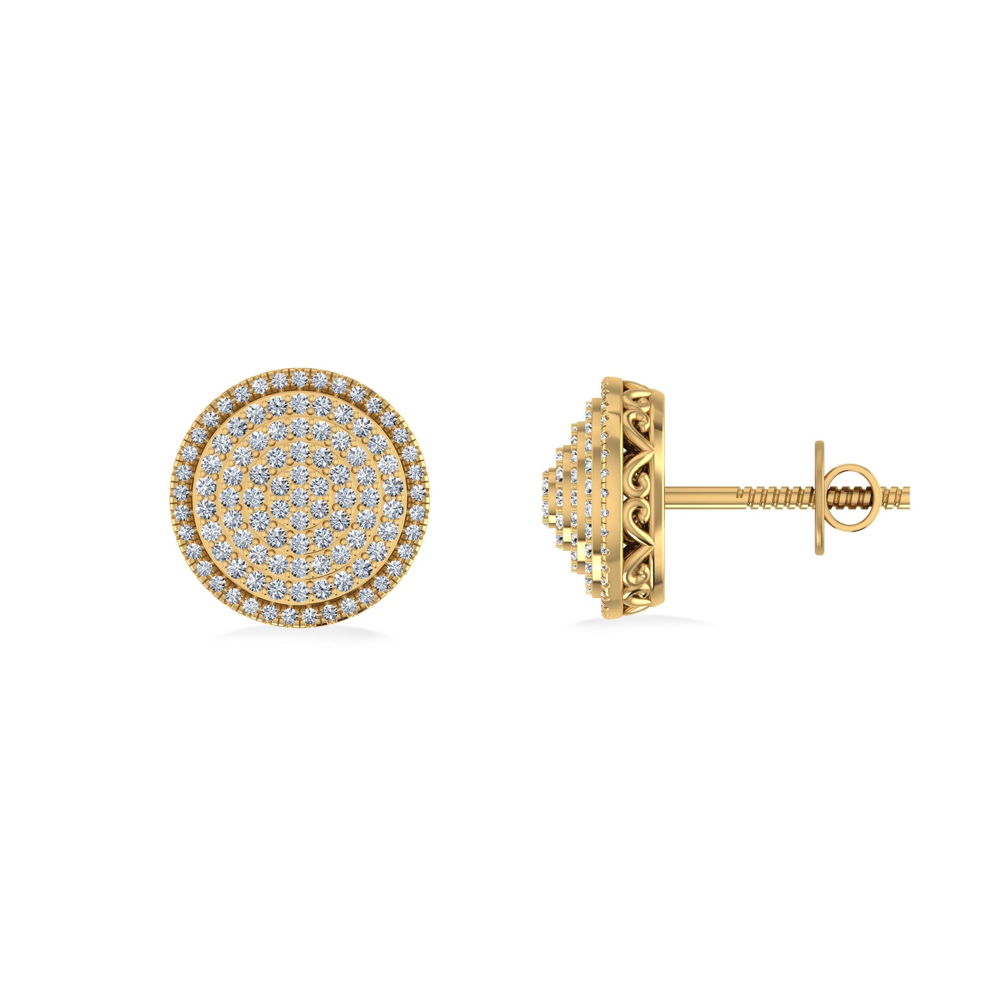 10K Yellow Gold Round Diamond Designer Mens Stud Earring 3/8 Cttw