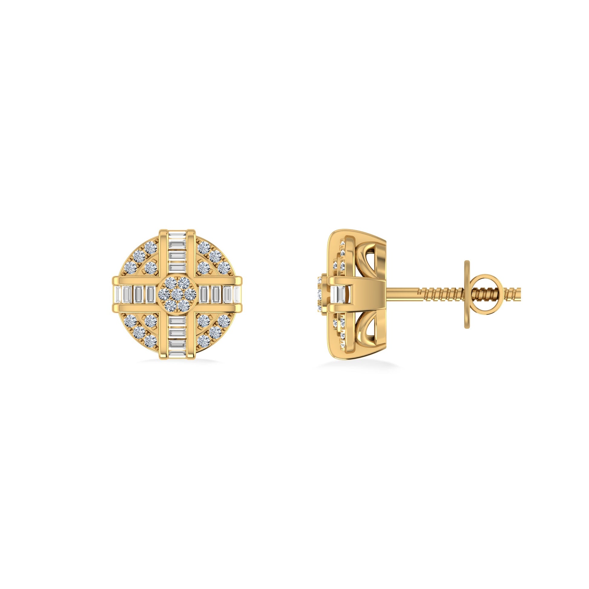 10K Yellow Gold Round Diamond Designer Mens Stud Earring 1/4 Cttw