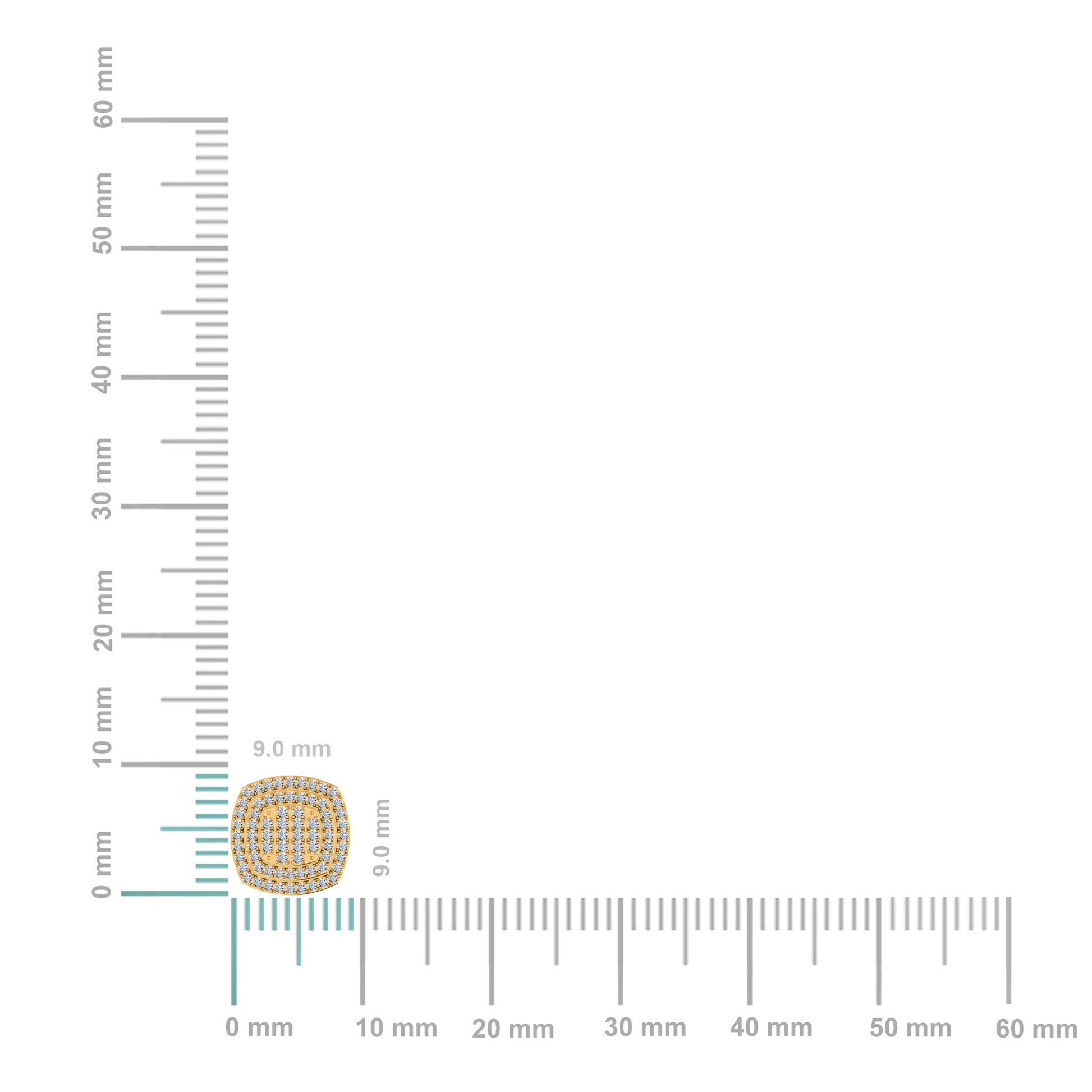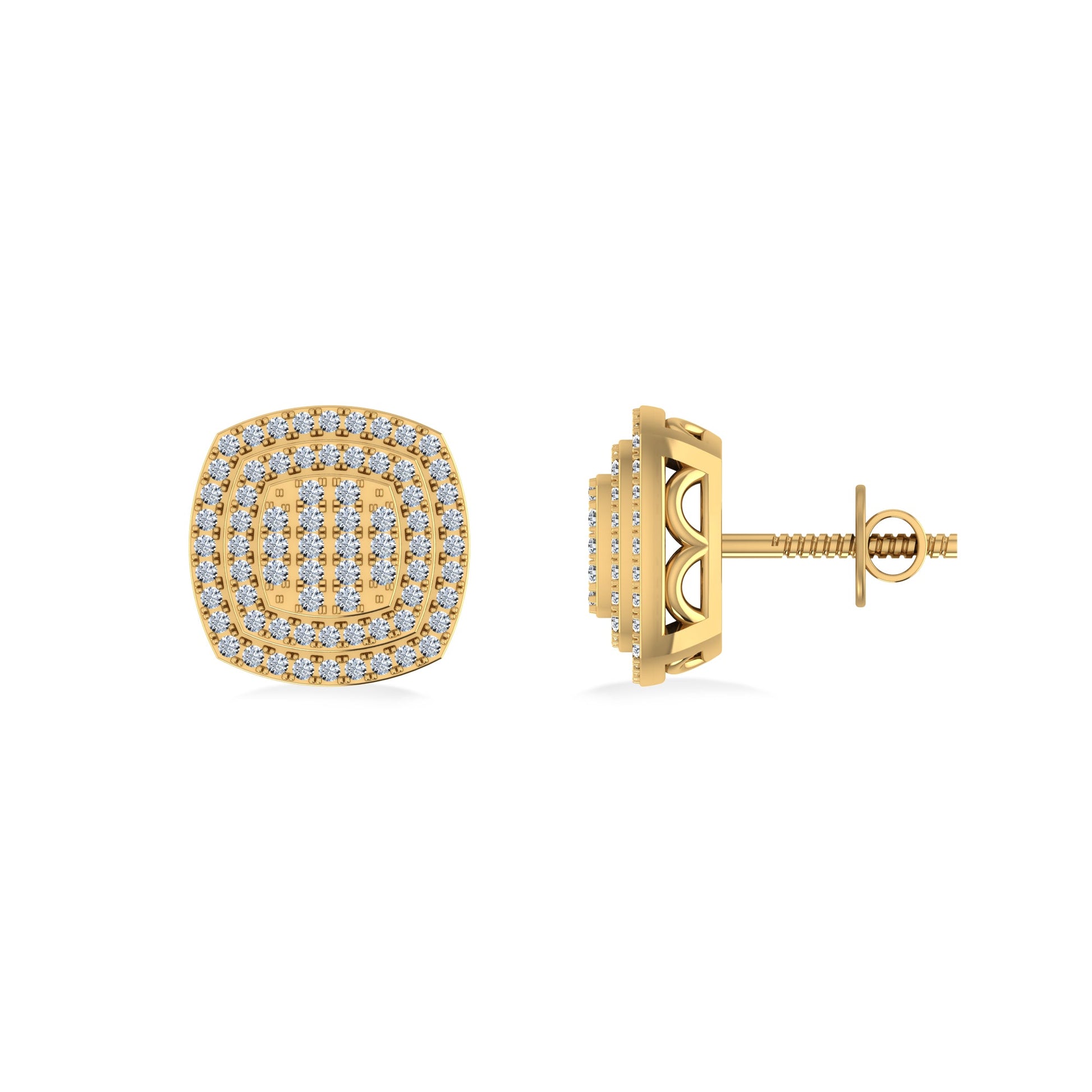 10K Yellow Gold Round Diamond Square Shape Designer Mens Stud Earring 1/5 Cttw