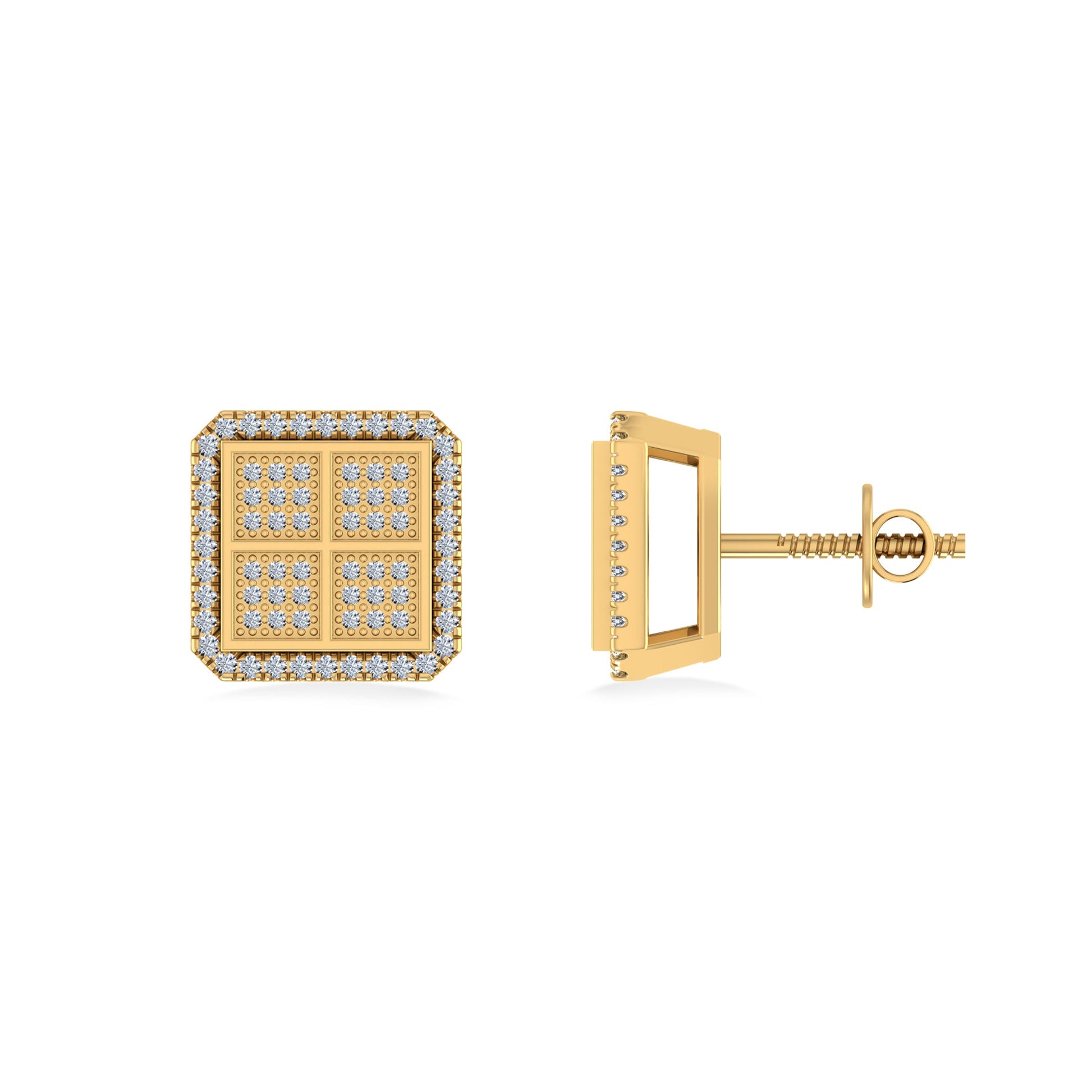 10K Yellow Gold Round Baguette Diamond Square Shape Designer Mens Stud Earring 1/5 Cttw