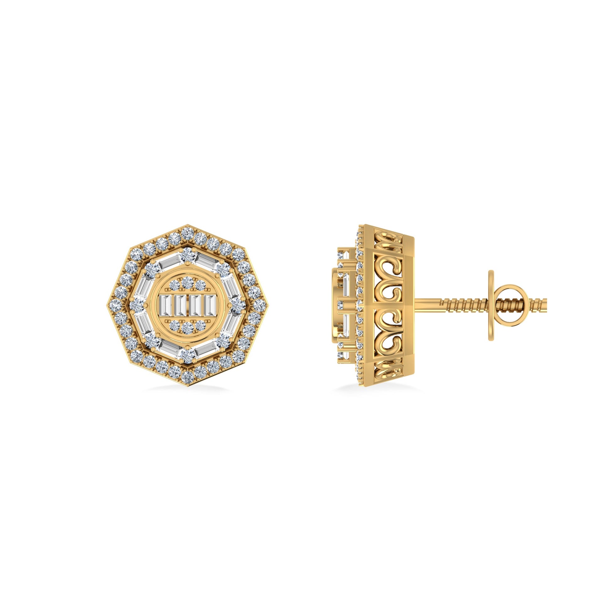 10K Yellow Gold Round Diamond Designer Mens Stud Earring 1/3 Cttw