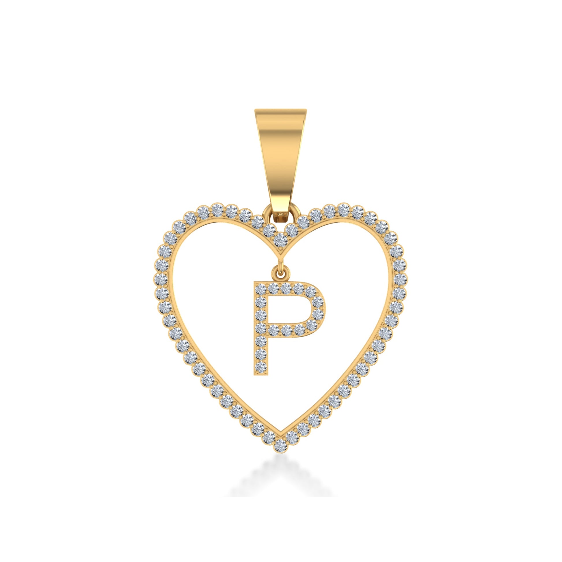 10K Yellow Gold Diamond Initial Heart P Letter Pendant 1/5 Cttw