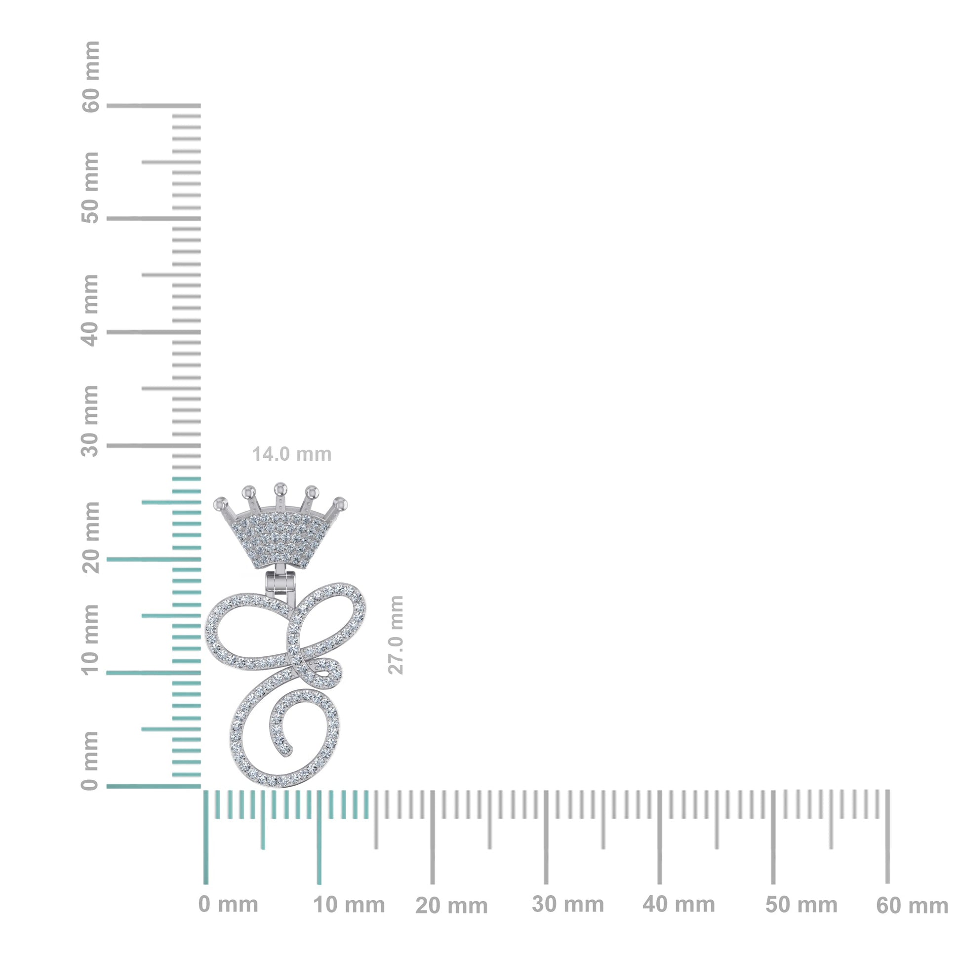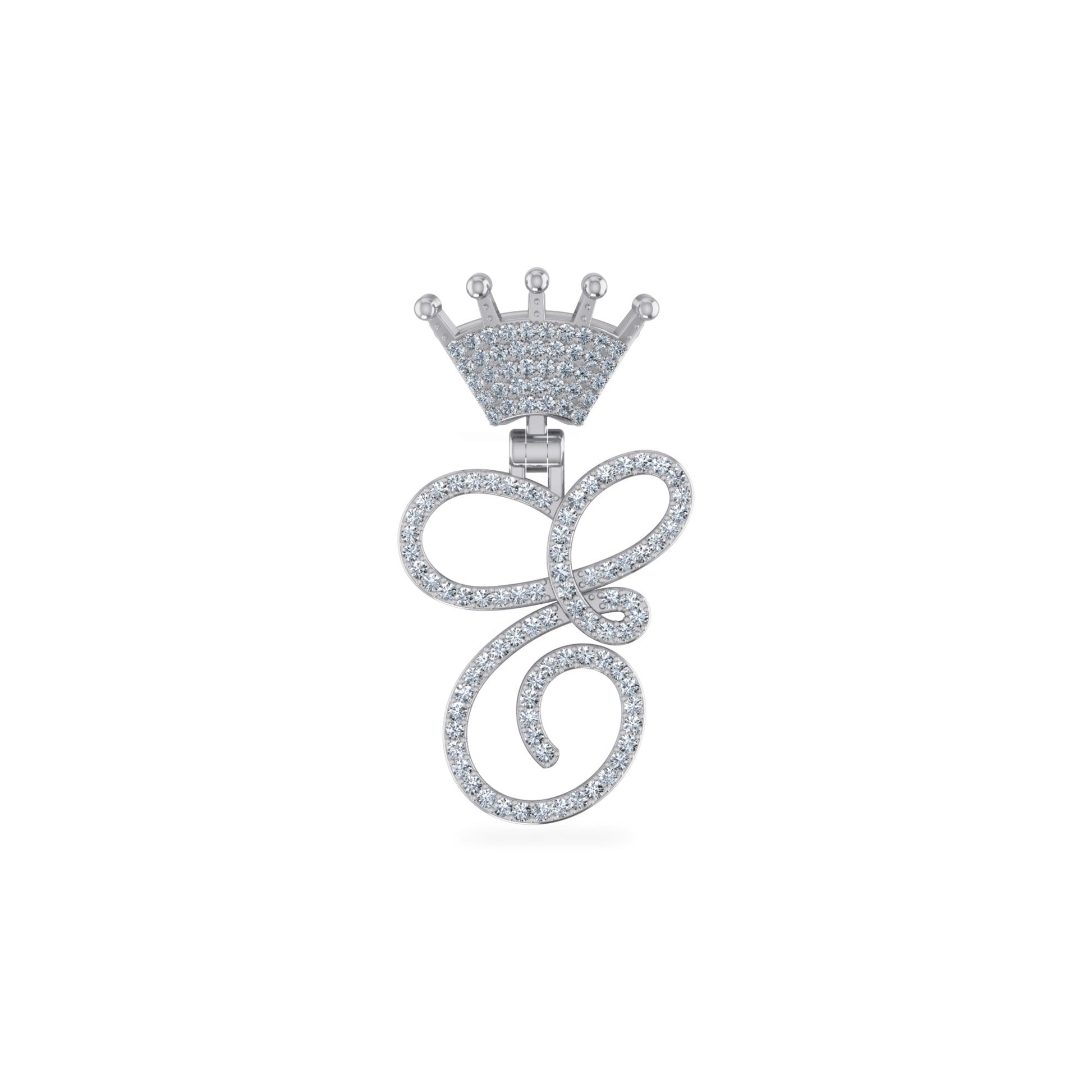 10K White Gold Round Diamond Crown C Letter Initial Pendant 1/4 Cttw