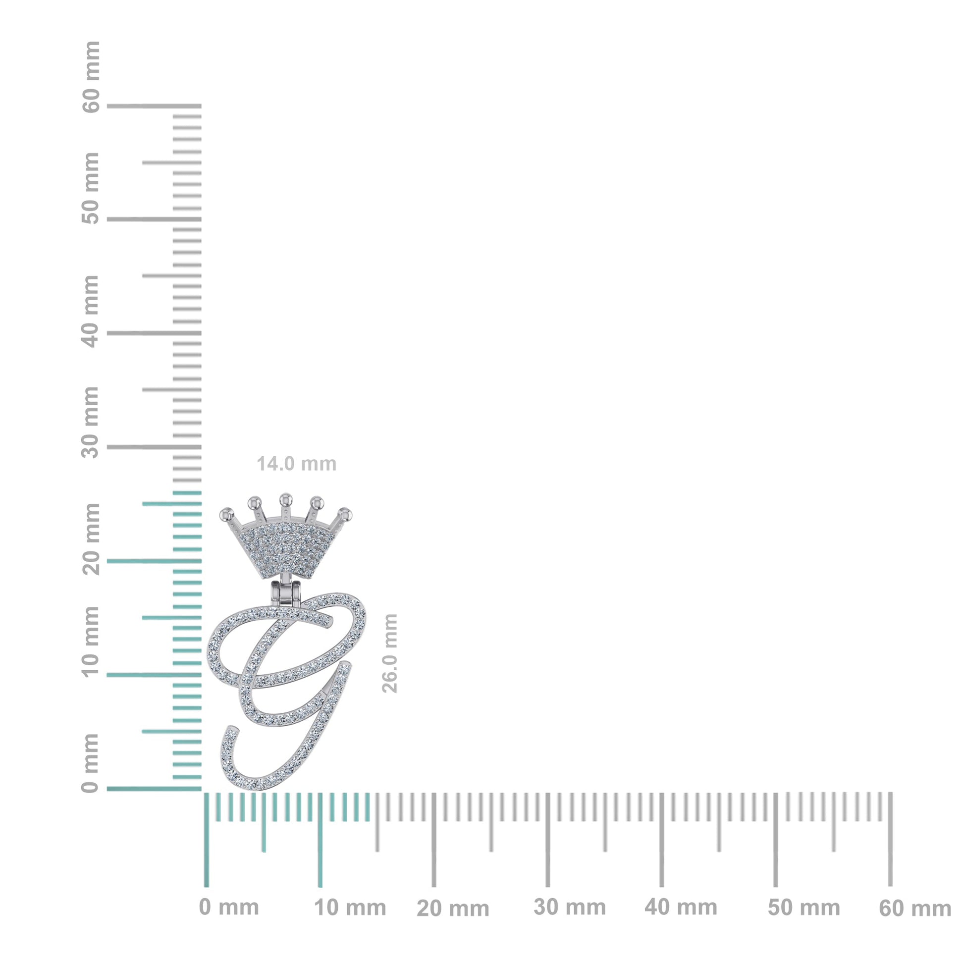 10K White Gold Round Diamond Crown G Letter Initial Pendant 1/5 Cttw