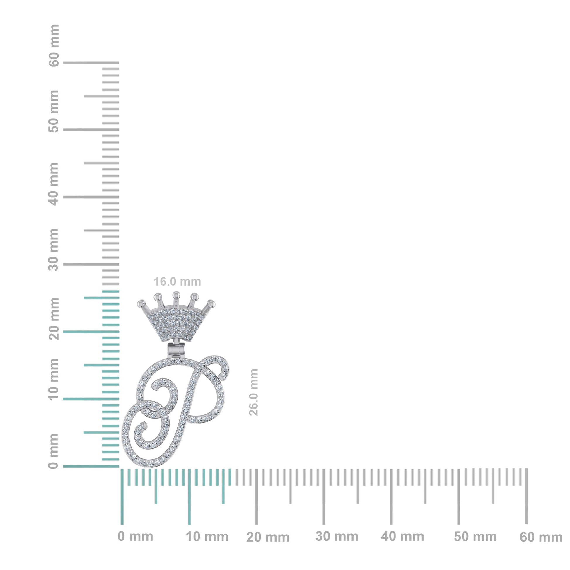 10K White Gold Round Diamond Crown P Letter Initial Pendant 1/4 Cttw